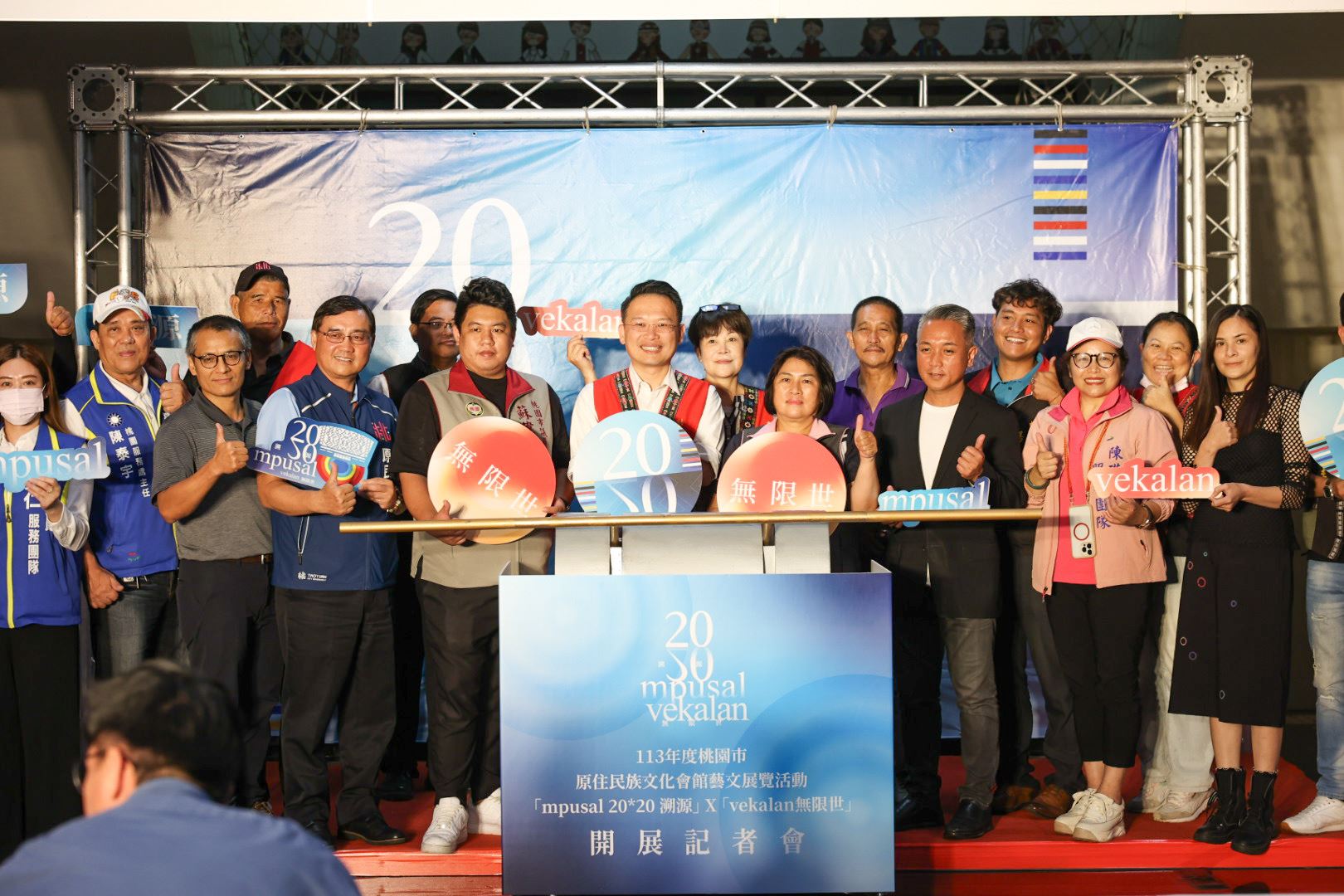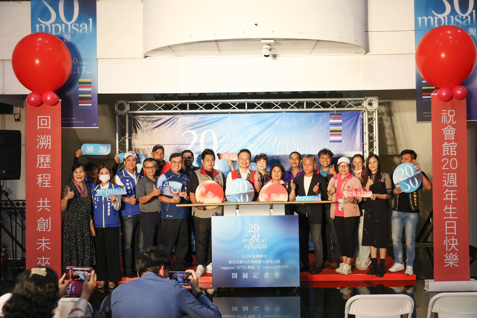 本市原住民族文化會館自民國93年7月10日開館,至今已走過20個年頭,為慶祝這一重要里程碑,於7月舉辦一系列20週年館慶活動。今日(10)桃園市副市長蘇俊賓蒞臨桃園市原住民族文化會館《mpusal 20×20溯源》20周年特展及《vekalan無限世》六都八館行銷展記者會,現場宣告桃園市原住民族文化會館20歲以外,更有許多展覽及系列慶祝活動。