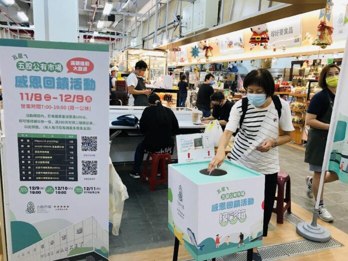 五股公有市場自111年11月8日起至12月9日,於每攤單筆消費滿100元可獲摸彩券,將於12月10日抽出豐富獎項,最大獎為iPhone14 pro(256g),還有60吋電視、蒸氣烤箱、折疊腳踏車、電烤盤及市場買菜金等共185項獎項。