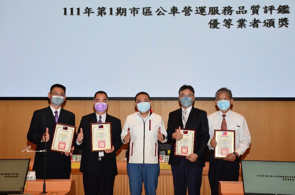 111年第1期新北市公車服務品質評鑑結果今天出爐,國光客運、臺北客運、淡水客運、首都客運等4家客運公司獲得優等;新北市長侯友宜於今天道安會報上頒獎表揚,並感謝公車業者持續落實防疫清消,提供市民提供最安全、最優質的公共運輸服務。
