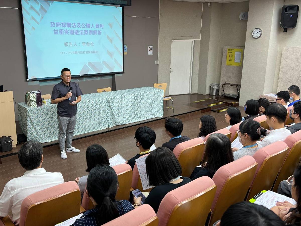 課程中,講師透過案例解析可能涉及採購爭議之原因及違失責任,說明執行公務時應區辨便民與圖利之界線及法令規範;另為避免同仁承辦之業務因個人疏忽而造成洩密等不當情事,提醒同仁所掌管之公務資料應妥慎處理及保密;並就「公職人員利益衝突迴避法」之相關規範輔以實際案例說明,提醒同仁處理利益衝突事件、申請交易或補助團體等作業,應遵守主動迴避、公開揭露程序,落實推動陽光法制。