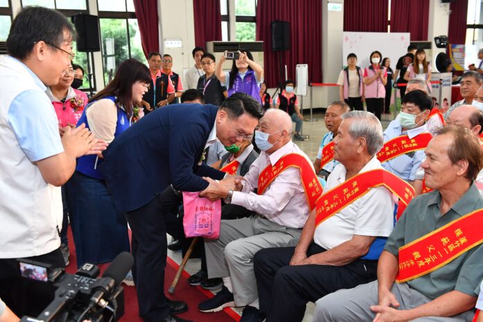 蘇副市長也特別向高齡97歲陳阿元先生、89歲阮興連先生及77歲原住民代表曾福壽先生致意,並邀請三位受獎者共同上台切父親節蛋糕,獻上最誠摯的祝福。