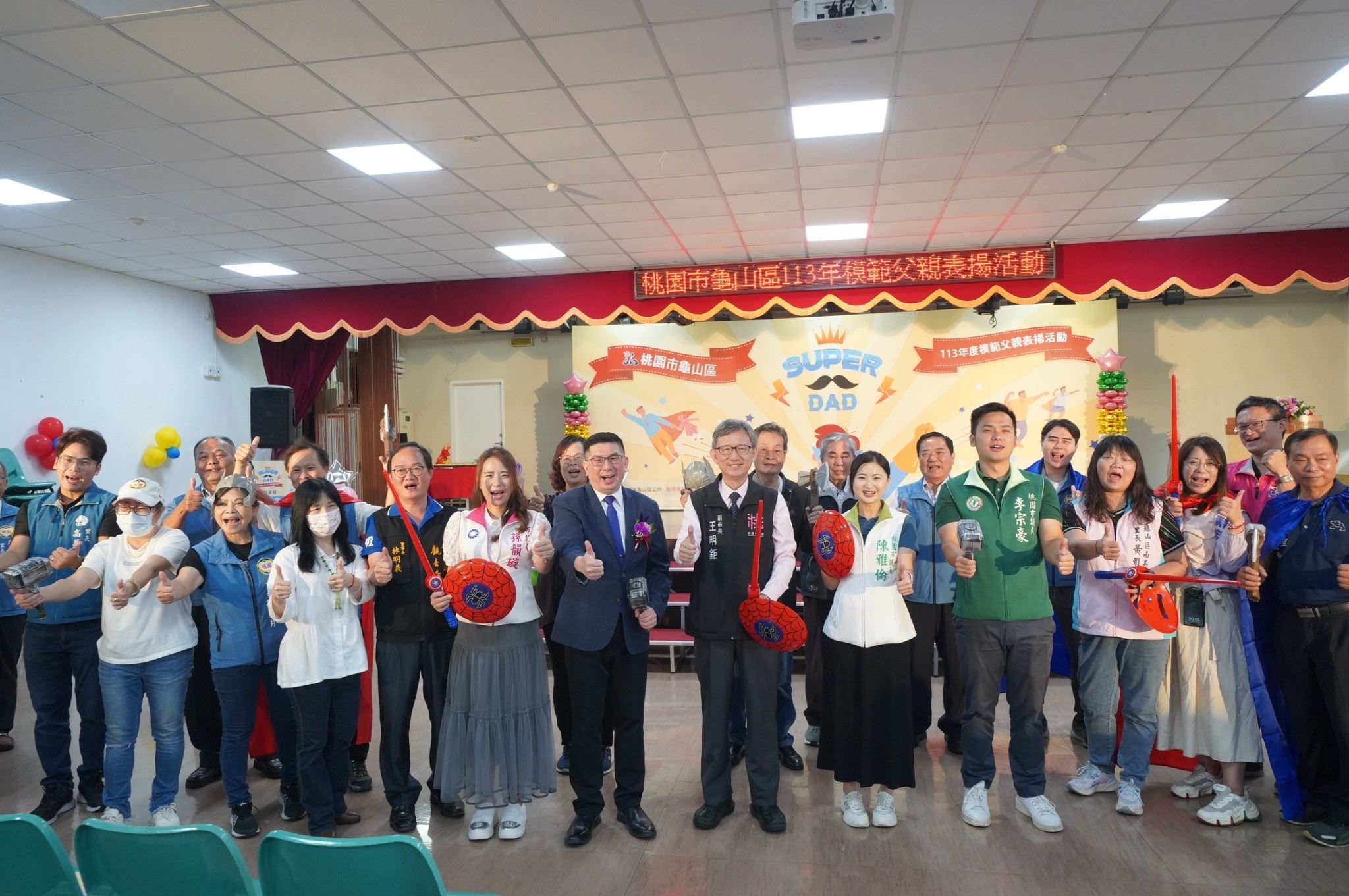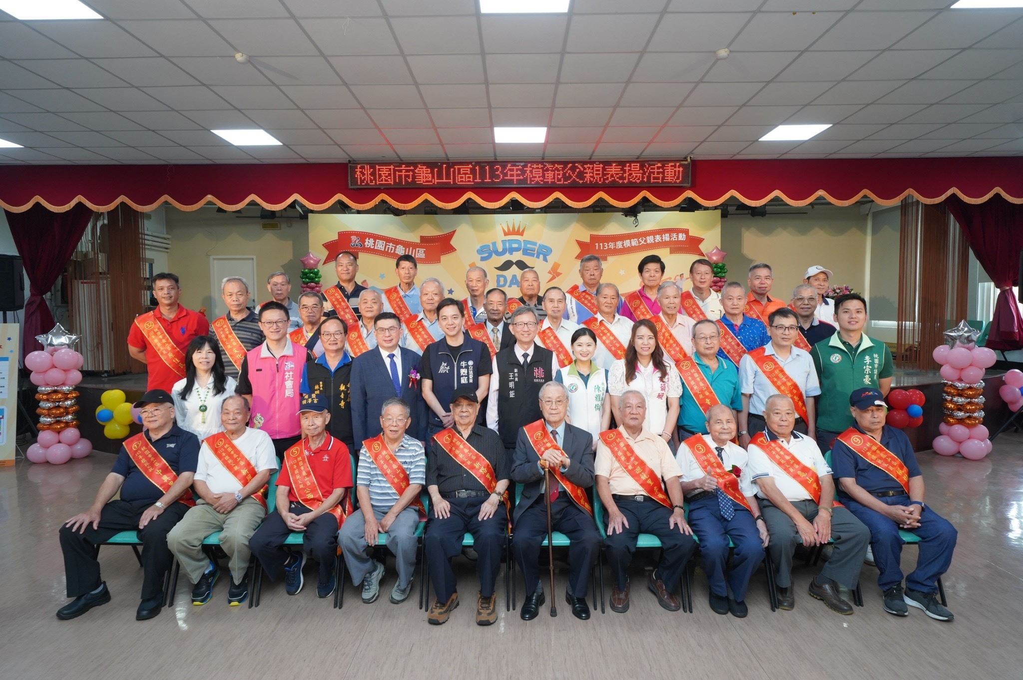 龜山區113年度模範父親表揚活動於113年7月27日(星期六)上午09:00在龜山區公所3樓禮堂隆重舉行。本次活動特別邀請桃園市副市長王明鉅等貴賓共同參與,表揚33位來自各里模範父親代表。他們用無私奉獻與堅韌不拔的精神,為家庭和社會做出了巨大貢獻,值得我們崇敬與學習。