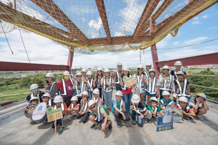 桃園軌道願景館暑假舉辦「小小軌道推廣員」認證活動,今年已邁入第五屆,這次以「逐夢高飛:捷運綠線北段高架工區巡禮」為主題,分兩梯次共帶領32組學員走進工區,近距離認識桃園捷運綠線北段高架工程的施作;下午的室內活動,還特別選在週一軌道願景館的休館日舉辦,讓參與的大小朋友獨享封館體驗設施與闖關的樂趣,營造出獨一無二的一日桃園軌道探索營隊。