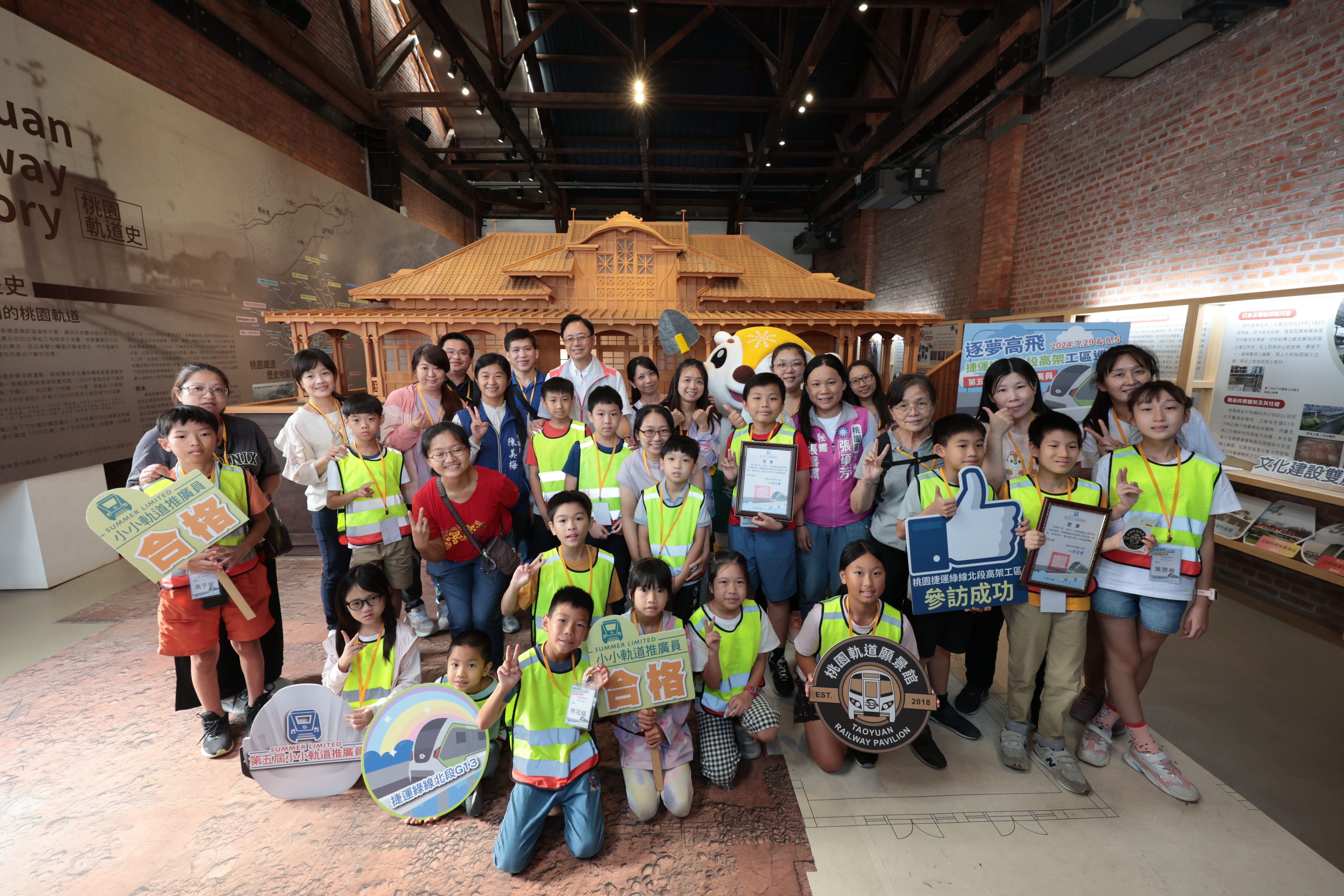 學員返回館內,由市長張善政頒發「小小軌道推廣員」證書後,一日營隊活動圓滿落幕。透過桃園軌道願景館的規劃,以專業解說搭配難得的工區實地參訪,讓更多親子能夠一同見證桃園軌道建設成果,也將這些小小軌道迷培養成為桃園捷運的推廣志工,讓更多人認識逐漸蛻變的桃園軌道建設。