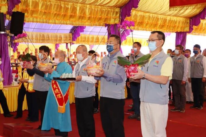 今天上午,縣長徐耀昌與縣府秘書長陳斌山、局處長恭迎仙佛進入法壇後,接著進行洗淨開斗火、迎接聖駕儀式,並在法壇虔誠參香、獻茗,行三跪九叩禮表達最高敬意。