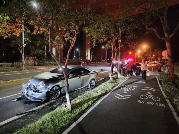 苗栗縣警察局竹南分局新港派出所警員蔡季宏於111年11月26日19時50分許接獲報案稱,後龍鎮新港三路與國道3號橋下路口,發生2部自小客車碰撞之交通事故,員警立即趕赴現場處理。