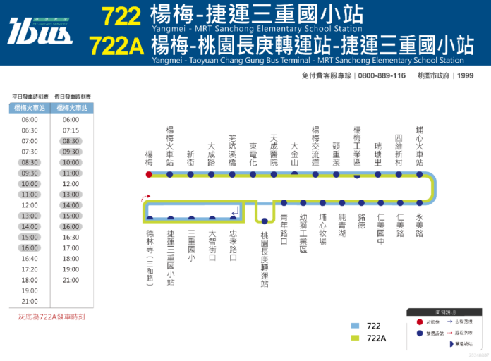桃市區公車722、722A「楊梅-桃園長庚轉運站-捷運三重國小站」8月9日正式通車!