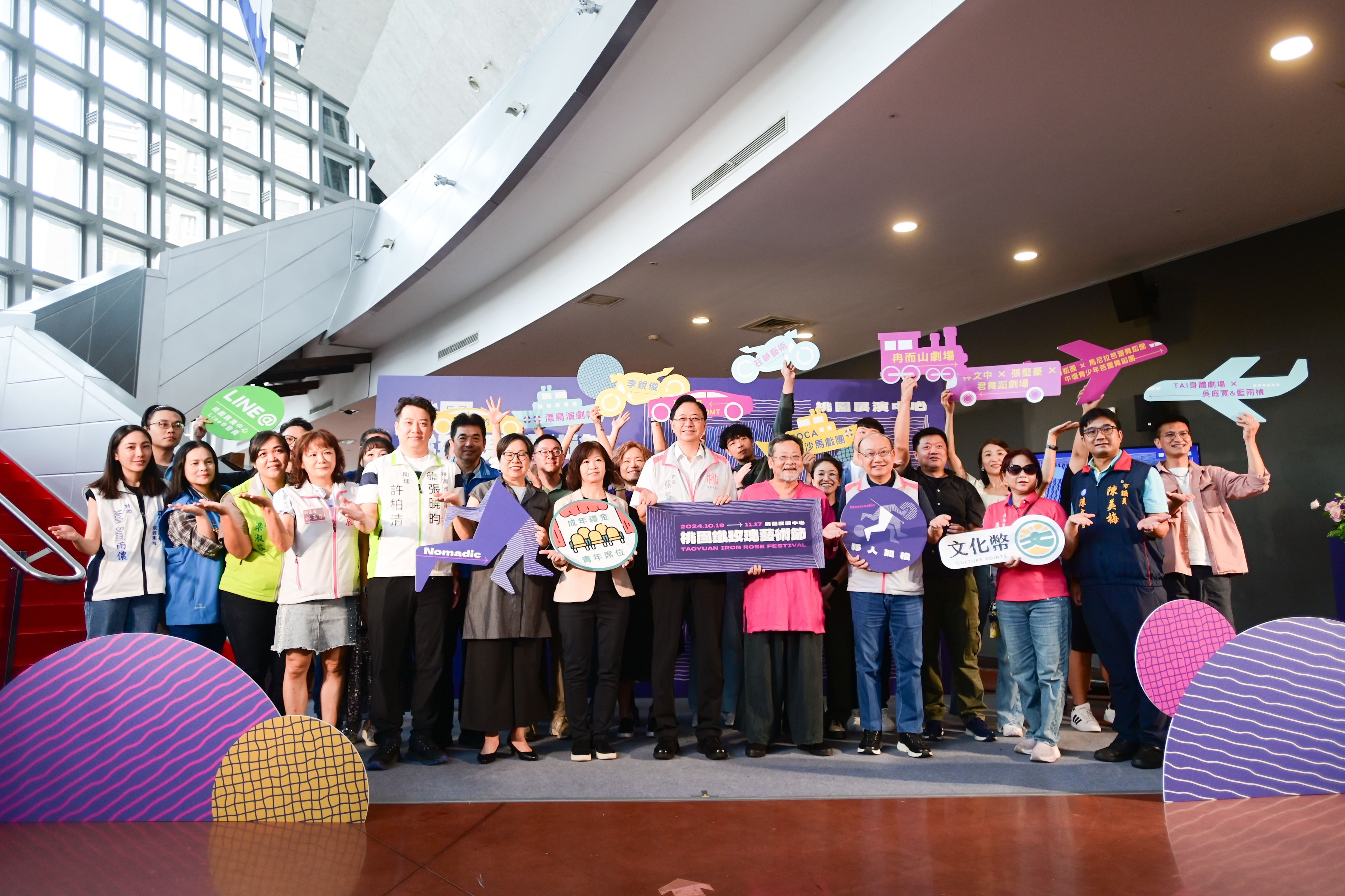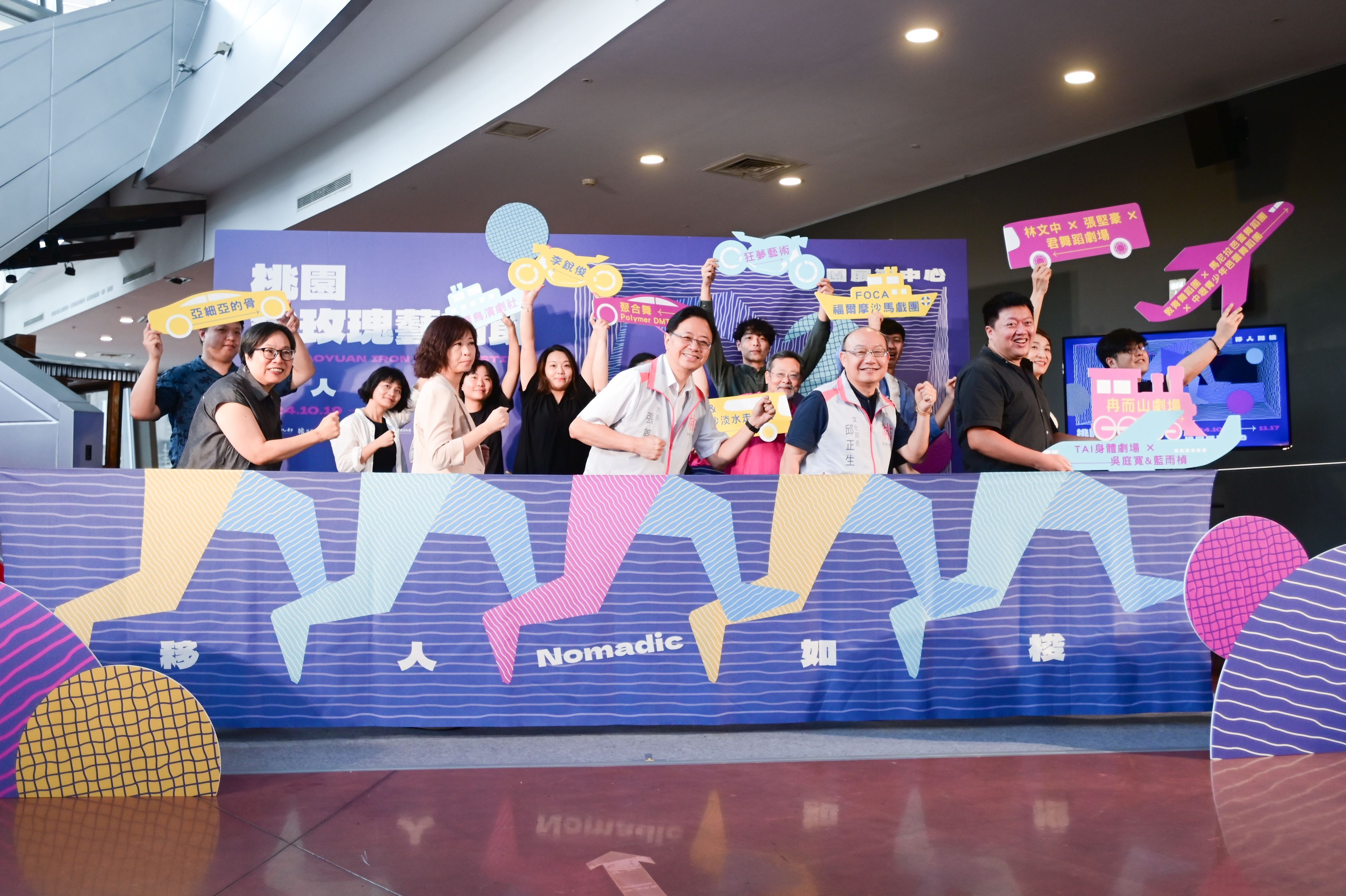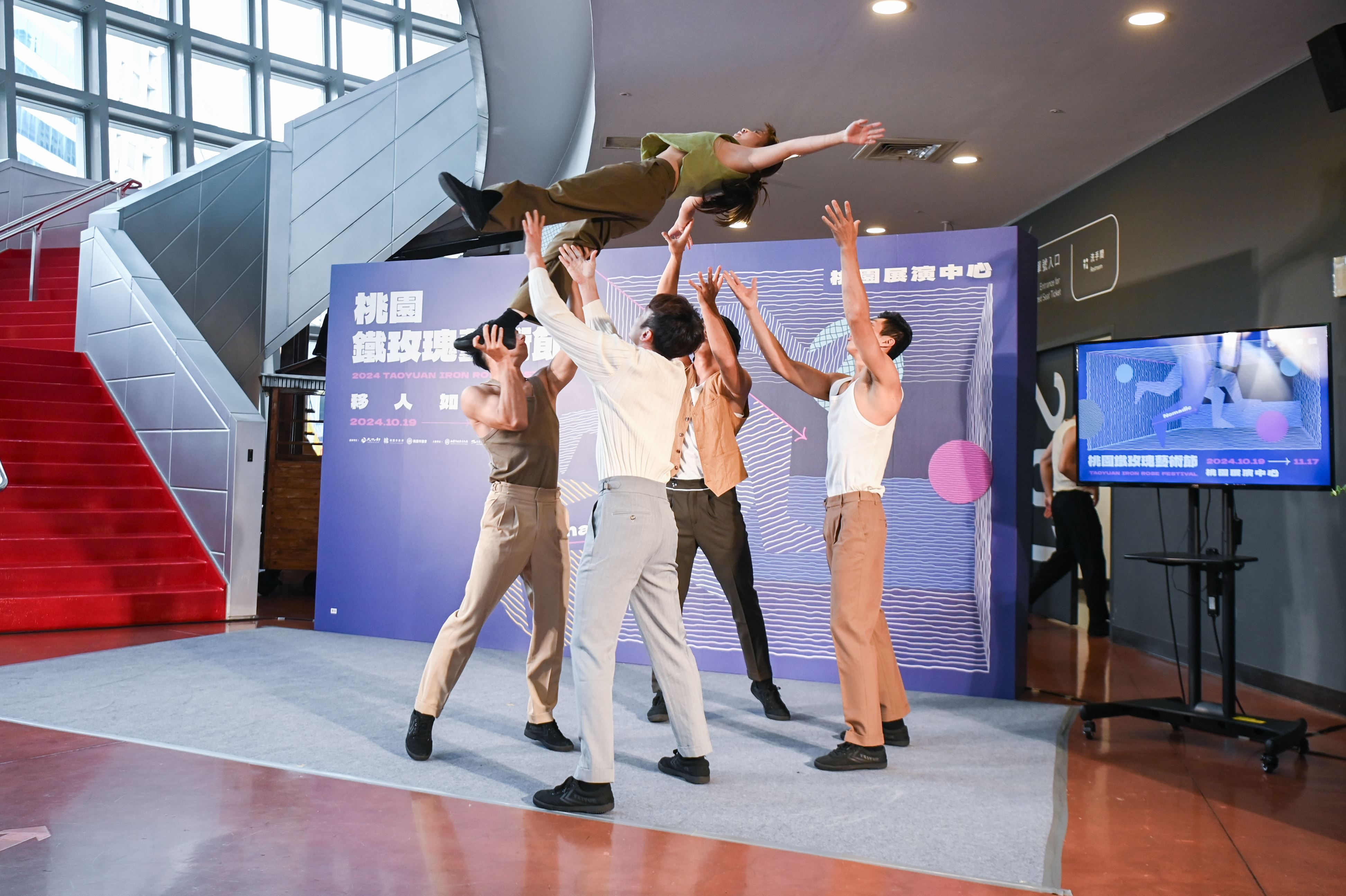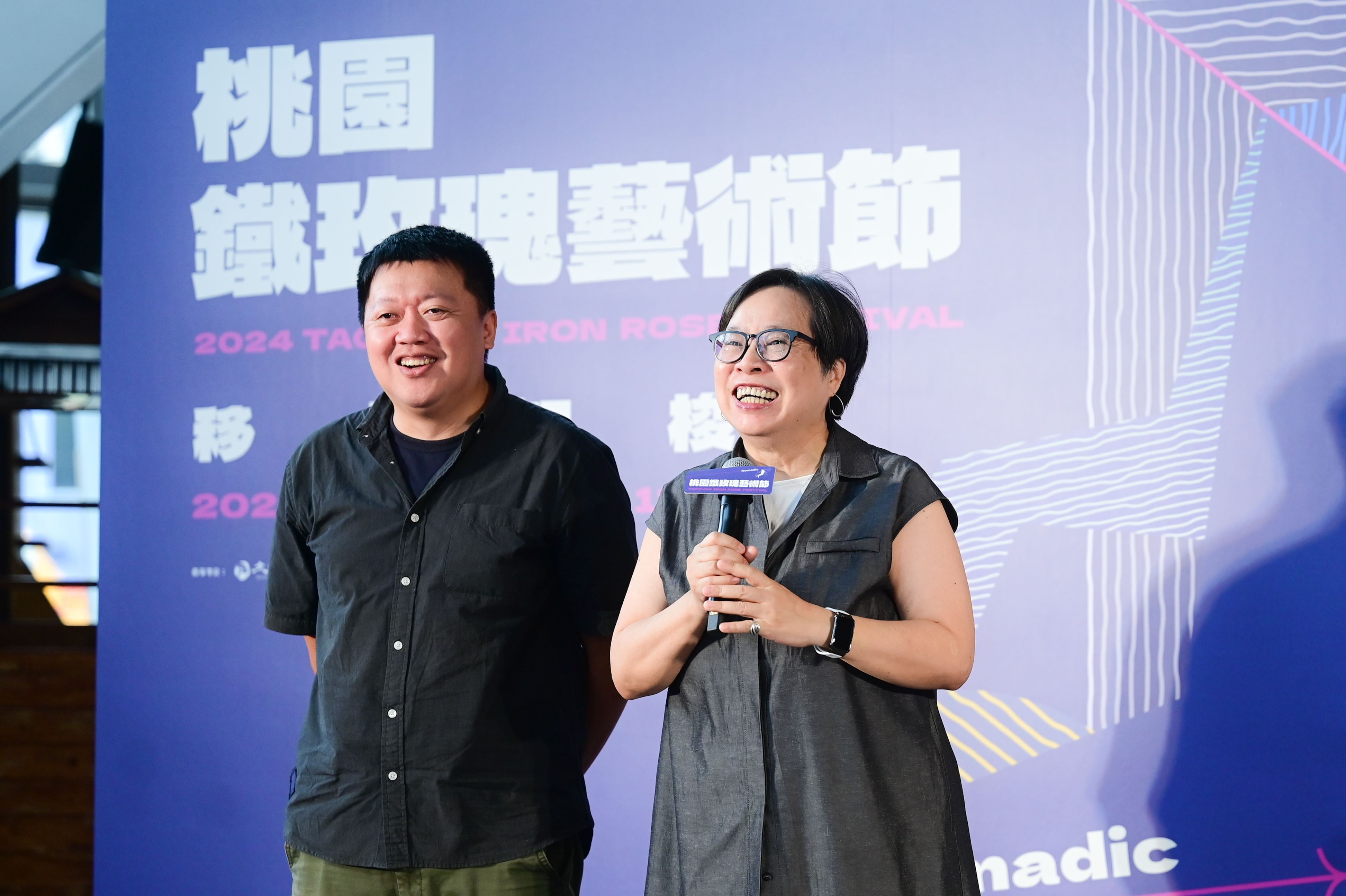 今日包括文化部藝術發展司專門委員陳青琪、市府文化局長邱正生、桃園市立圖書館長施照輝、2024鐵玫瑰藝術節策展人李惠美、表演藝術聯盟理事長陳錦誠、常務理事林佳鋒、表演團隊陳明章、FOCA福爾摩沙馬戲團團隊等均一同出席。
