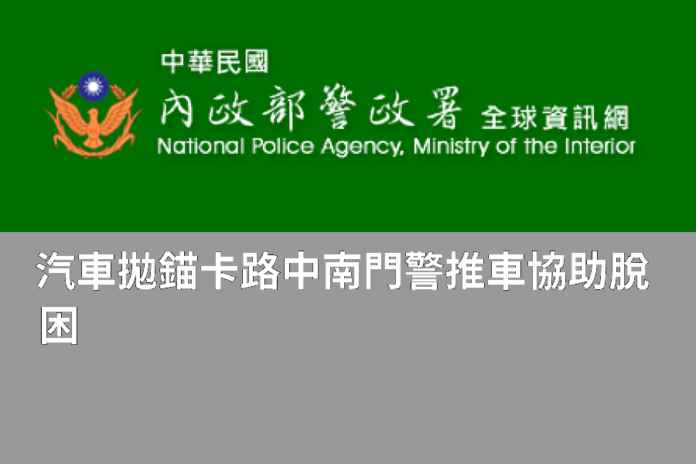 經了解該名吳姓駕駛人向警方表示,在停等紅綠燈後準備起步時,車輛突然拋錨無法發動,所以車輛才會停於路中,經撥打拖吊車業者電話也打不通,只好至一旁店家借用交通錐擺放,正當一籌莫展之際,所幸巡邏員警經過,發現該車停於路中,並主動上前關心。經警方了解狀況後,視現場路況,考量該路段為市區南北向主要道路,車流量非常大,因車輛停於路中央並佔用了一線車道,導致後方車輛紛紛閃避,只能跨越至對向車道通行,非常危險,為避免事故發生及交通的壅塞,員警2人合力在後徒手將故障車輛推至路旁安全處,協助聯繫道路救援並等待拖吊業者到場,順利解除「顧路」危機。吳男表示車輛突然拋錨於路中央加上聯繫不上道路救援時,當下不知道要如何是好,還好有警方及時給予協助,事後吳男讚許南門派出所的員警親切又熱心,多次感謝員警在其不知所措時給予協助,可以順利脫離困境。