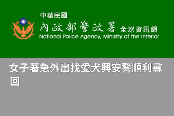 心急如焚的洪姓女子向警方表示,自己的愛犬從家中跑出去,所以才騎車出來尋找,已經找了好幾個小時都找不到,之前從來沒有走失的經驗,相當著急且煩惱。警方了解情況後,先行安撫洪女不安的情緒,並且詢問相關愛犬的特徵。洪女表示自己愛犬是黃色的柴犬,配有發亮的項圈等資訊,警方調閱路口監視器畫面,並詢問周遭店家是否有看見類似特徵的小狗,沿路挨家挨戶詢問住戶,其中1間住戶正好因為在外面晾衣服,有看見類似特徵的小狗,警方持續在周邊來回巡視,終於在立仁高中前尋獲洪女的愛犬,隨即通知洪女前來確認,經確定該小狗就是洪女思念的愛犬。洪女向警方不斷感謝,並相當肯定警方的認真,並不會因為走失的只是條小狗,就沒有特地去尋找,反而是積極的在附近找尋,順利將走失的愛犬尋回;警方也藉此機會提醒要多留意小狗狀況,最好是繫上項圈並且綁好,避免愛犬再次離家出走。