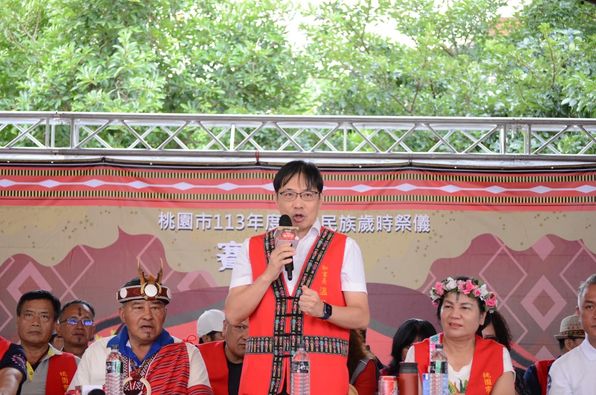 桃園市溫秘書長代欣於今(18)日前往中壢區原住民族集會所天幕廣場,出席本市與原住民族賽德克族族人們共同舉辦「113年度原住民族歲時祭儀-賽德克族收穫祭」。在活動開始前由大會主席林建忠(桃園市賽德克族教育文化產業發展協會理事長)及市副總頭目江添才帶領族人舉行祈福儀式,向祖靈表達感恩之意,祈求祖靈保佑族人,傳承並延續原住民族傳統文化。