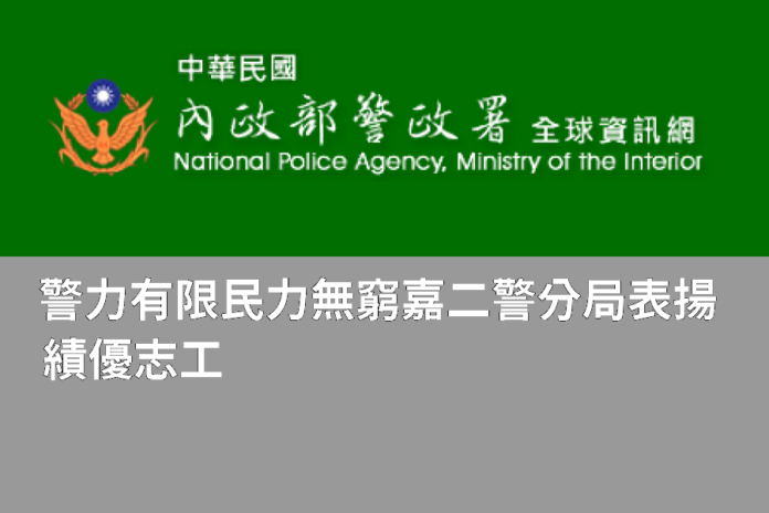 志工精神就是無私的奉獻與付出,第二分局感謝所有警察志工們的無私奉獻,因為有志工們的熱情付出,讓嘉義市這座美麗的城市充滿活力,處處充滿著溫情,民眾走入每一處警察機關,都可以看到警察志工夥伴熱忱貼心的服務身影 ,「警力有限,民力無窮」,警察志工是警察最有力的後盾,也是打造「全齡共享、世代宜居」新都心的最佳幫手。