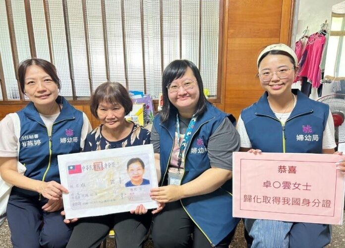 去(112)年6月阿雲奶奶礙於需展延護照效期等因素,於辦理國籍歸化時無法成功送件,透過桃園市新住民家庭服務中心社工洽詢戶政事務所辦理流程,並持續確認辦理進度,今(113)年8月21日桃園市政府婦幼發展局、桃園市榮民服務處、移民署桃園市服務站、平鎮戶政事務所等單位,共同至阿雲奶奶家關懷及發放臺灣身分證,如今奶奶可以更安心在臺灣生活。