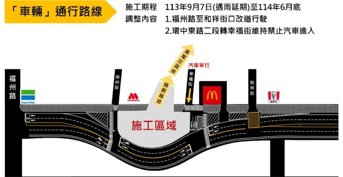 - 中壢區環中東路二段福州路至和祥街口處車輛改道行駛。