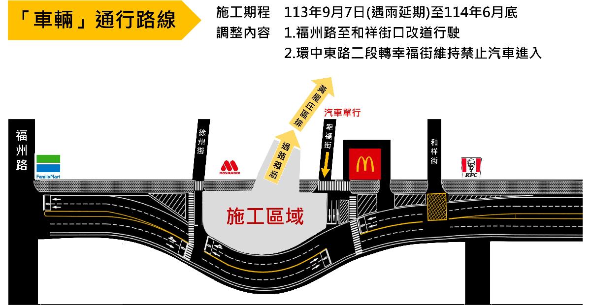 - 環中東路二段轉幸福街維持禁止汽車進入。
