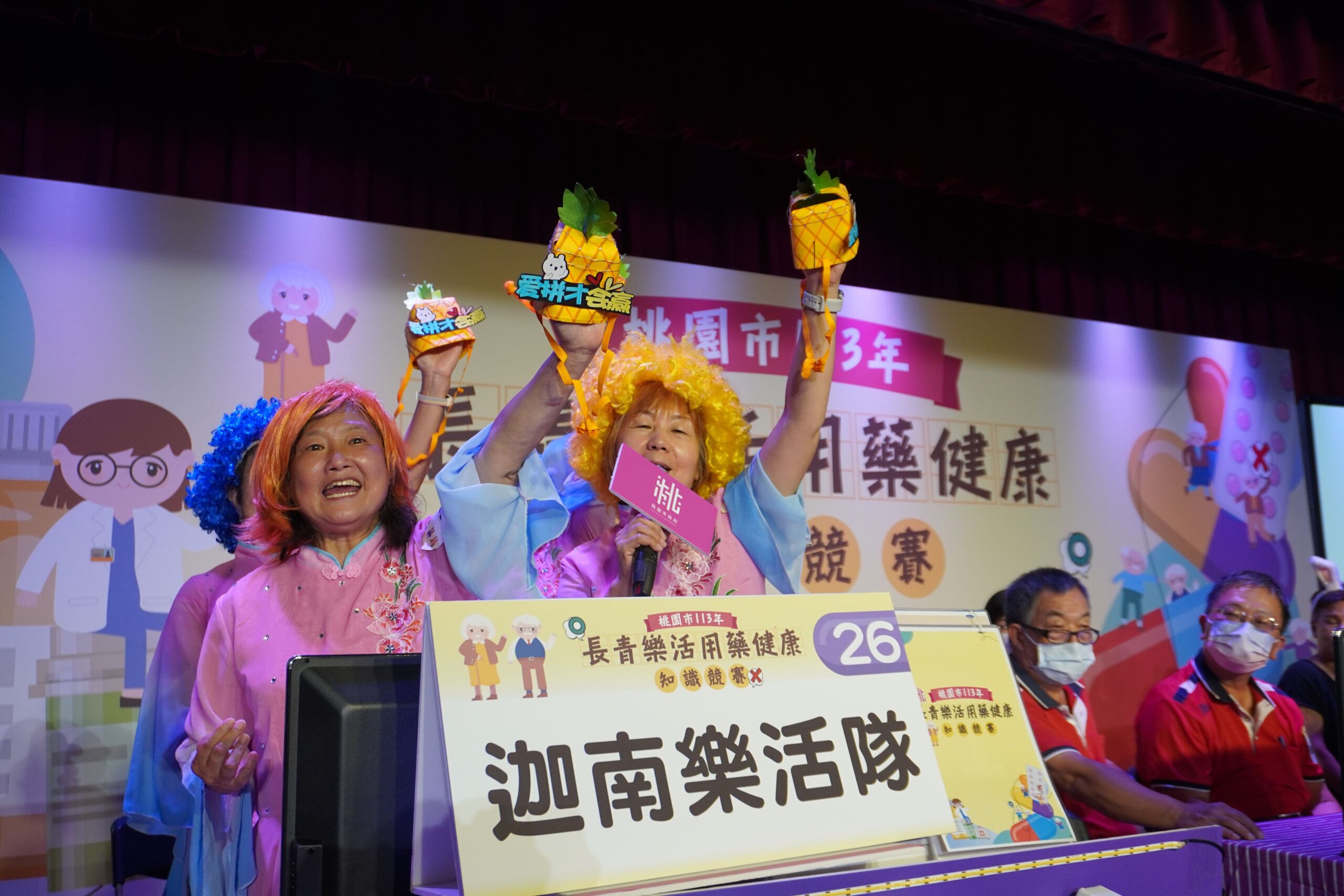 桃園市政府衛生局為提升長者用藥安全和生活品質,今(29)日於開南大學舉辦「113年桃園市長青樂活用藥健康知識競賽」活動,廣邀社區長者組隊參加,鼓勵長者走入社區邁向人群,現場搭配綜藝答題的方式,強化長輩對用藥知識的掌握及運用,達到社會參與及預防延緩失能的目的,更為長者創造一個活躍老化、樂齡生活的舞台。