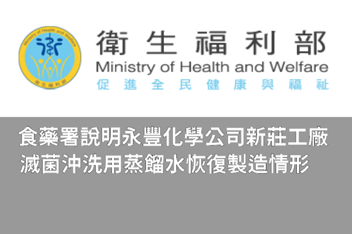 衛生福利食藥署說明永豐化學公司新莊工廠滅菌沖洗用蒸餾水恢復製造情形