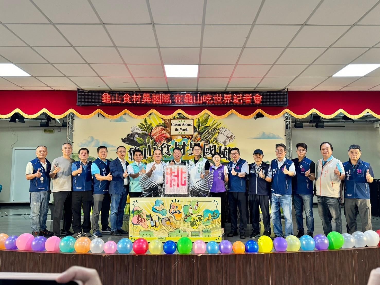 龜山區公所於今(113)年9月4日(星期三)在公所3樓禮堂辦理「龜山食材異國風」-在龜山吃世界記者會,本次記者會特別邀請桃園市政府金副祕書長等貴賓共襄盛舉,連結在地小農,結合餐飲科學生廚藝,共同推出創新異國料理,品嘗美食新滋味,推廣在地好食材。