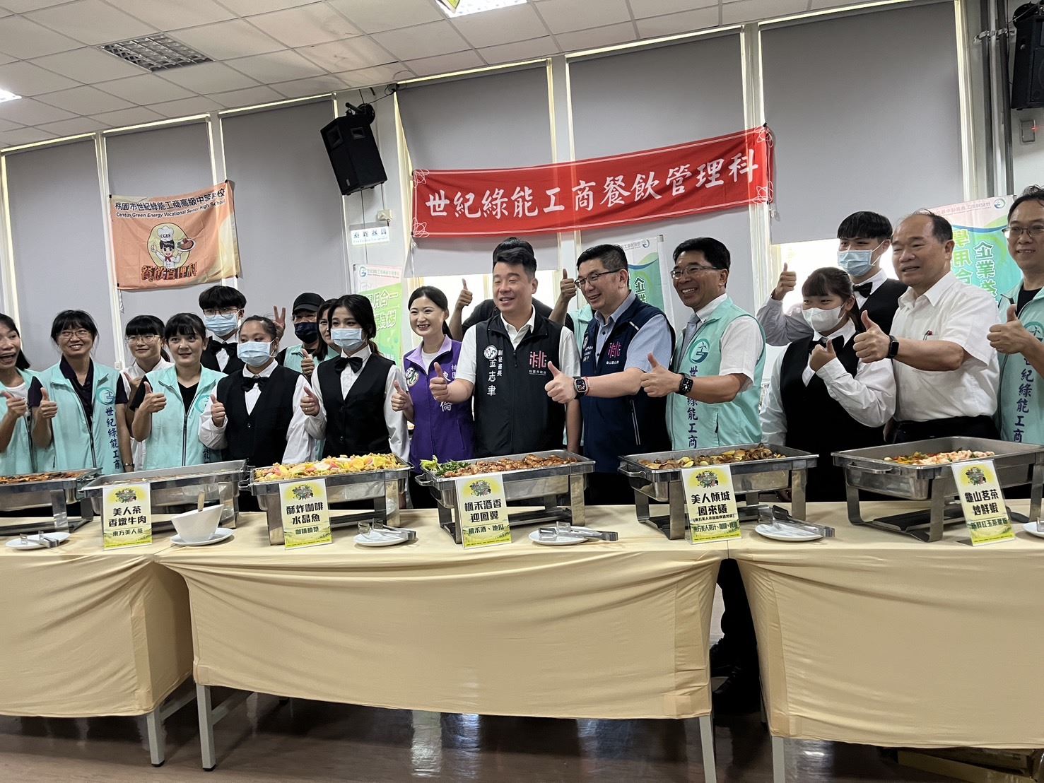 世紀綠能工商(餐飲科)為本市「產學攜手合作計畫」合作夥伴,校方在發展技職教育貢獻良多,餐飲管理科系更榮獲全國米食競賽冠軍殊榮,本次邀請餐飲科的同學,發揮巧思精心設計,將料理與龜山在地農特產品結合,異國風味為題材,呈現創意與美味,讓大眾接受多元食材。