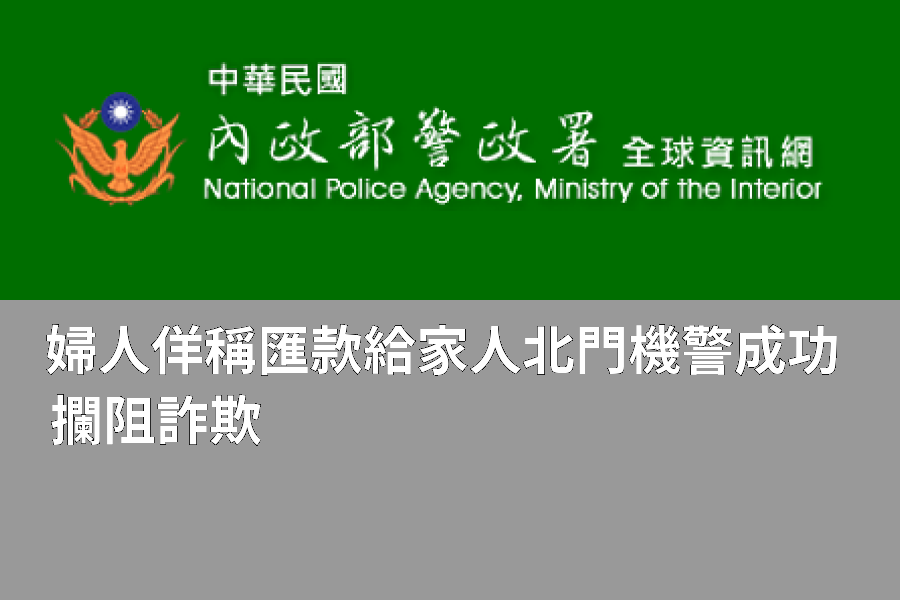 社會警政婦人佯稱匯款給家人 北門機警成功攔阻詐欺