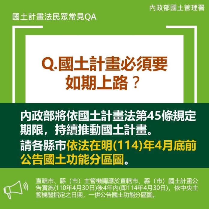 內政部最後表示,目前已有過半12縣市提報國土功能分區圖草案,後續也會儘速召開國土計畫審議會議進行審議,強調國土計畫法是要引導土地合理利用,絕非「綁手綁腳」政策,提醒未繳交國土功能分區圖草案的縣市儘速提交,以確保國土永續。
