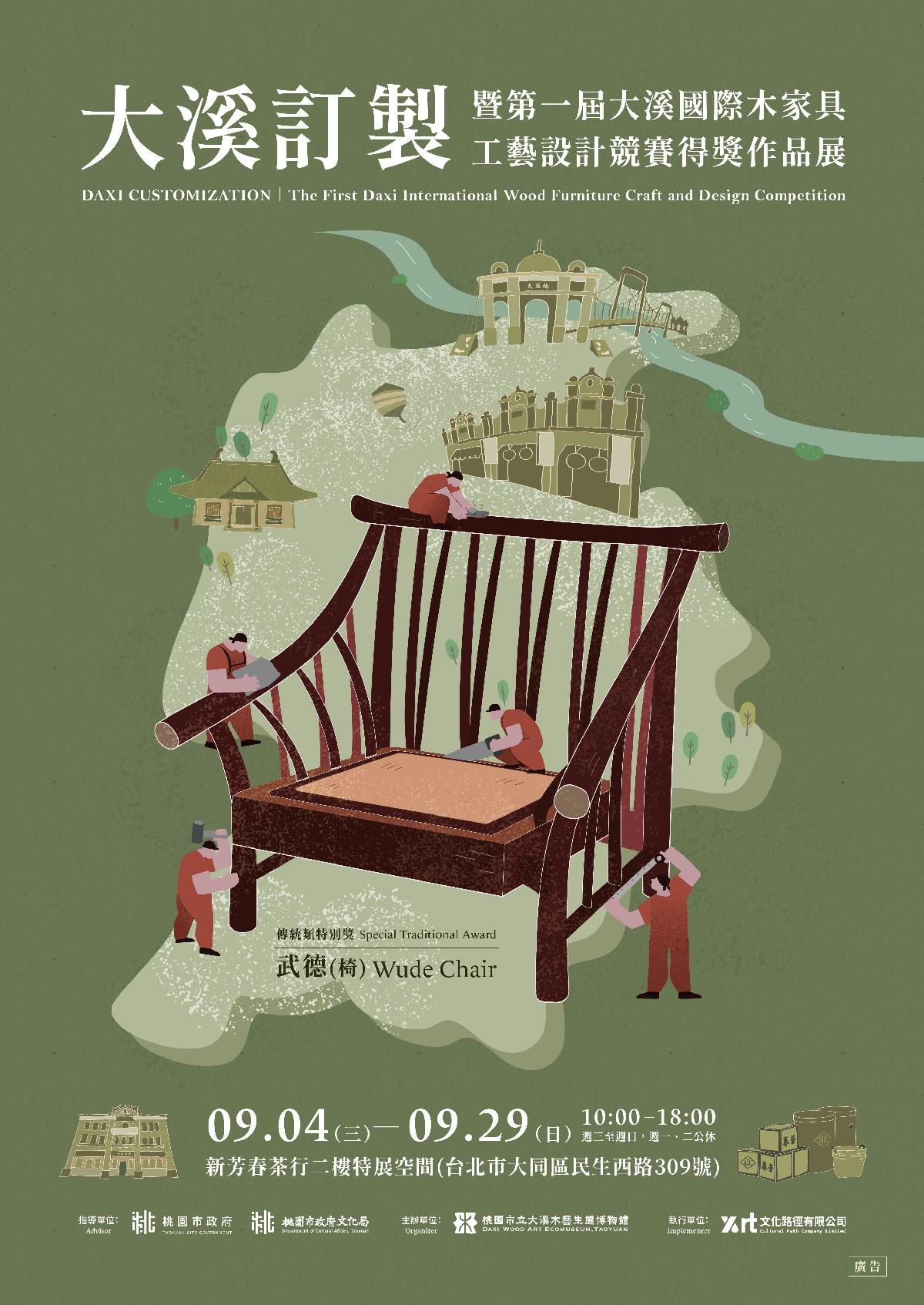 桃園市立大溪木藝生態博物館主辦「大溪訂製暨第一屆大溪國際木家具工藝設計競賽得獎作品」第二場巡迴特展,自113年9月4日至9月29日,於臺北市新芳春茶行獨具風味的歷史空間展出,帶觀眾體驗木藝結合茶藝的木生活想像。