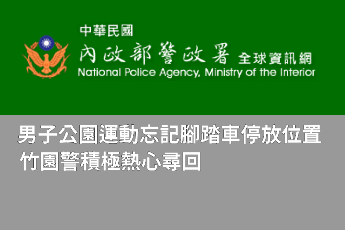 社會警政男子公園運動忘記腳踏車停放位置竹園警積極熱心尋回