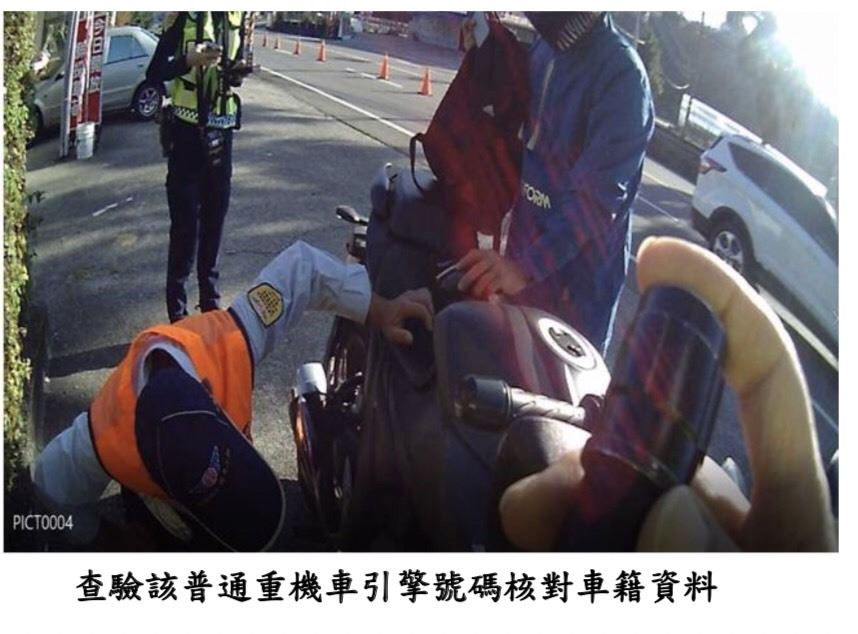 苗栗縣警察局交通警察隊於11月中旬週末假日與監理、環保單位共同執行省道台3線防制危險駕車路檢勤務,在該省道128公里處發現1部普通重型機車行駛道路所懸掛牌照樣式、數字顏色與現行牌照有所差異,苗警立即攔檢稽查該部機車,並向駕駛人告知稽查事由,林姓駕駛人配合警方查驗,並表示該牌照為機車臨時牌照,作為買賣試車用途。