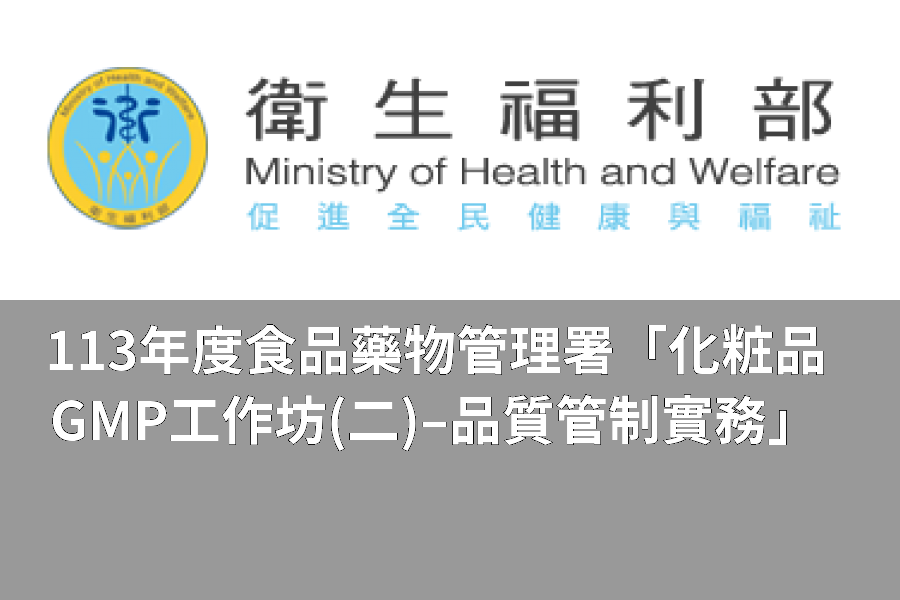 為確保產品符合預期品質,化粧品之品質管制作業有適當管控之必要。 透過風險角度考量,有足夠嚴謹且具科學性之評估,並建立有效之品質 管制措施,將有助於確保產品品質及安全。有鑑於此,衛生福利部食品 藥物管理署委託工業技術研究院量測技術發展中心舉辦 113 年度食品藥 物管理署「化粧品 GMP 工作坊(二)–品質管制實務」,盼藉由本次工作 坊協助化粧品製造場所內相關作業人員學習品質管制相關實務性議題, 並透過實作練習幫助作業人員有效應用於實際作業中。本次工作坊將於 北、中、南區各舉辦一場,敬請各位業界先進踴躍參與!