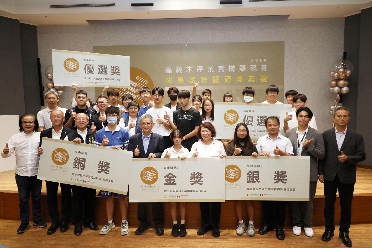 嘉義市政府於建城320周年之際,與雲林科技大學合作舉辦「繁衍城市DNA」木產業實構築競賽,以「城市客廳」為主題,邀請全台大專院校和高中職報名參賽,總計收到11所大專院校、18件作品和10所高中職、22件作品。經過激烈競爭後各有五組作品進入決賽,本月7日至9日在文化局廣場搭建實體作品,最終大專組由成功大學「木木織亭」拿下金獎;高中、職組則由嘉義高工「嘉。室」榮獲金獎殊榮。今(15)日市長黃敏惠與文化局長謝育哲、林業及自然保育署嘉義分署副分署長李定忠、日台交流協會高雄事務所所長奧正史、雲林科技大學教務長李傳房等貴賓到場並頒發各獎項的獎狀及獎金。 黃敏惠市長表示,嘉義市的木業基礎從日治時期的「木都1.0」建設逐步演進到「木都2.0」的舊空間活化,再到今天的「木都3.0」,每一步都標誌著市府團隊對木都DNA持續繁衍的堅定承諾。這次進入決賽的團隊,用三天的時間日以繼夜、不畏風雨的拚戰態度,恰恰呼應了KANO原鄉-嘉義市「永不放棄」的精神。尤其比賽場地正是過去暫存原木的杉池,鄰近嘉義製材所與阿里山森鐵,完整的林業文化場域,作為「繁衍城市DNA」木產業實構築競賽的場地更具歷史傳承與世代創新的意義。市府未來也會持續透過人才永續培育、產業跨領域、科技合作等方式來持續實踐、不斷創造。 雲林科技大學教務長李傳房表示,雲科大很榮幸能辦理本屆賽事,文化創意產業的設計思考初衷是「源於文化、勤於設計、用於生活」,因此本次賽事以文化為素材,透過設計應用到生活,將木材文化元素應用於產品,是很好的文化傳承,而透過利用國產材,培養了解木結構的設計師,也期望對嘉義市「木都3.0」發展有幫助。 文化局長謝育哲表示,木產業實構築競賽今年是第三年舉辦,雲科大這一次與嘉義市政府合作,由於嘉義市從日治時期就是由林業發展而來的城市,不僅林業文化底蘊豐厚,這幾年在黃敏惠市長的帶領下,市政府推動木都各項計畫成績十分耀眼,獲得國內外多項建築、環境、設計方面的重要獎項。在這樣的的歷史文化脈絡下,整合產官學界一起來推動木產業、木文化更具時代意義。 文化局指出,這次競賽材料由農業部林業及自然保育署嘉義分署提供國產柳杉,嘉義茂新木業加工製材,日商美福公司提供防腐藥劑,並委託南投竹山德豐木業進行藥劑灌注,充分整合各方資源,共同推動永續發展。而學生們的每一件作品都充分展示了未來嘉義市及台灣建築界、設計界對新式木構建築的重視與推動潛力,每位參賽者都是未來木構築領域的重要推動者。 文化局表示,這次競賽以「城市客廳」為主題,鼓勵參賽團隊設計出功能多元的木構築空間,供市民停留、休憩和互動,旨在促進市民與木構築的交流,並讓外來訪客能夠深入了解嘉義市的獨特城市特色。市府將持續推動林業文化的保存與活化,並鼓勵使用創新木造技術,致力打造「全齡共享、世代宜居」的人文森林城市。 高中職組金獎:嘉義高工_「嘉。室」銀獎:秀水高工_「靜謐書窟」銅獎:明道中學_「森影之苑」優選:大安高工_「燕返」大安高工_「環緩」 大專組金獎:成功大學_「木木織亭」銀獎:成功大學_「湧動」銅獎:中國科大_「水韻庭蔓」優選:東海大學_EarsForest中國科大_「23.5°N」