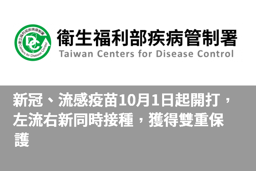 衛生福利新冠、流感疫苗10月1日起開打,左流右新同時接種,獲得雙重保護