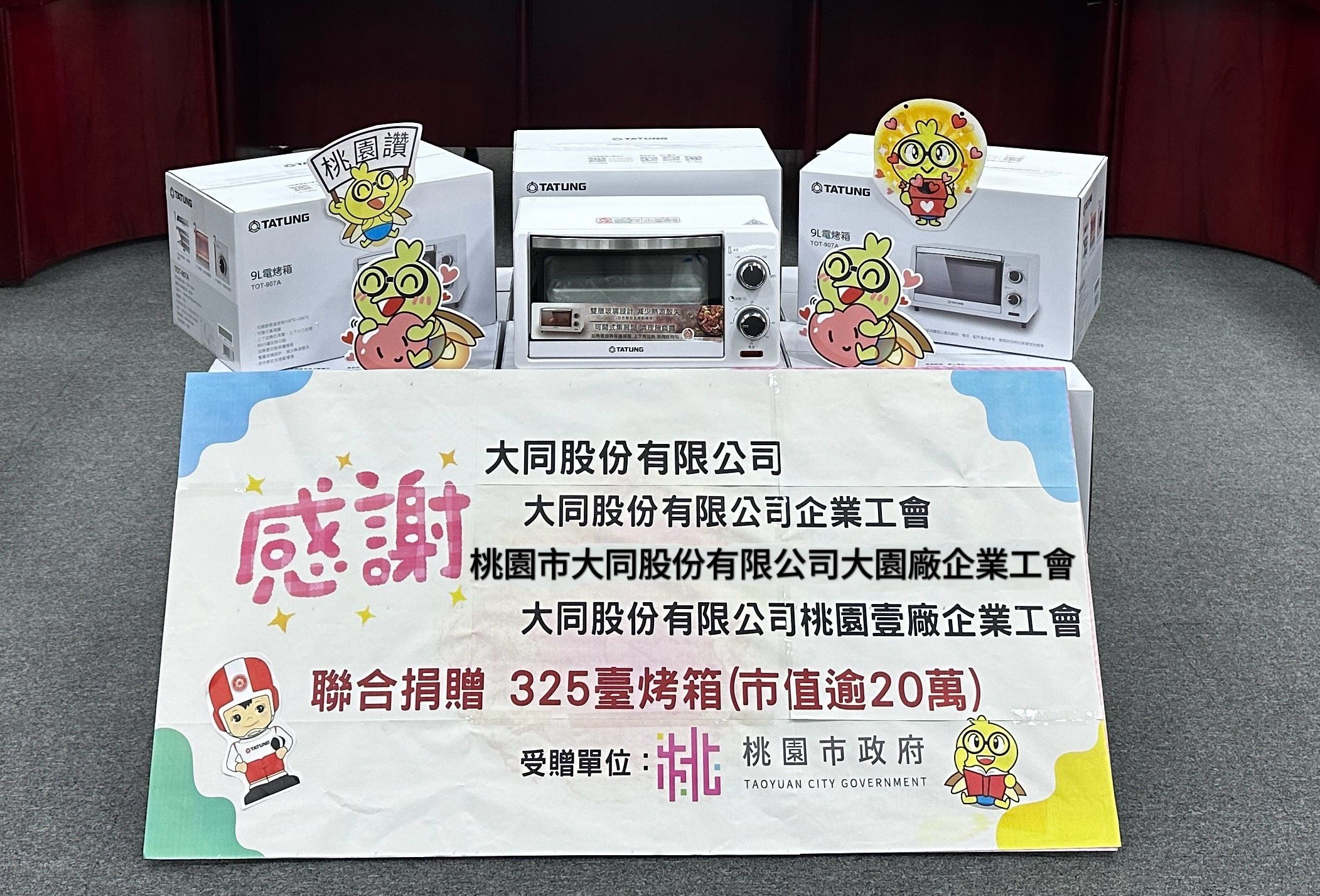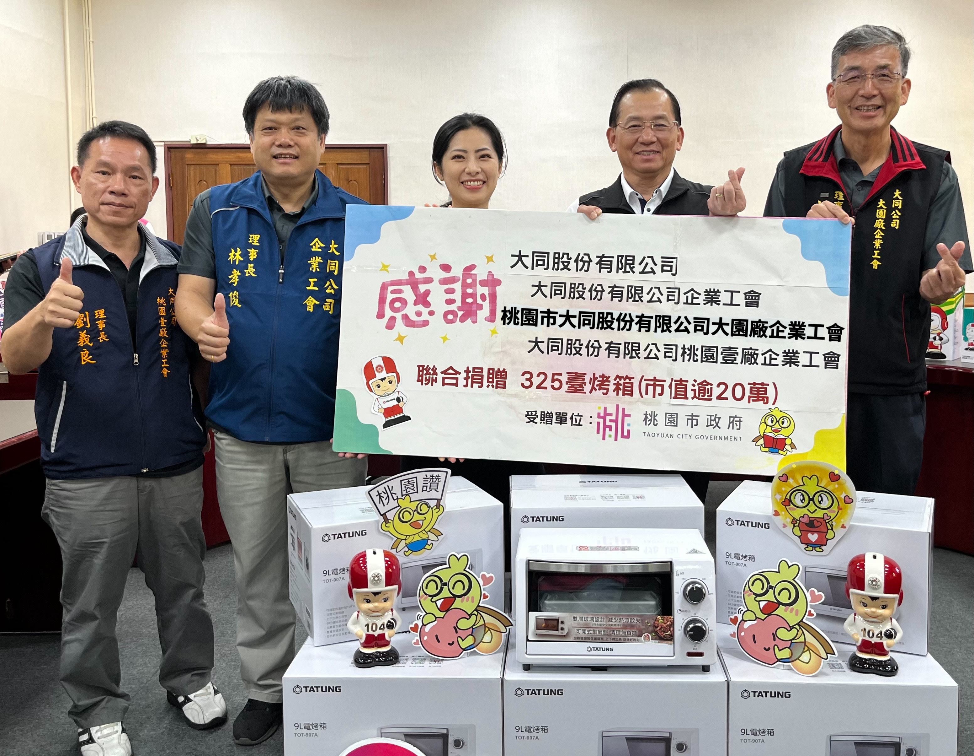 大同股份有限公司長期關心社會弱勢族群,將社會責任納入企業文化中,偕同大同股份有限公司企業工會、桃園市大同股份有限公司大園廠企業工會及桃園市大同股份有限公司桃園壹廠企業工會齊心投入社會公益活動,幫助社會需要被關懷的群體,實踐社會回饋,共同為社會公平正義盡一份力。本次在中秋前夕,為照顧本市經濟弱勢家戶,捐贈9公升大同烤箱325台,讓弱勢家庭得以維持基本生活品質,此批烤箱將透過安家實物銀行媒合予需要的家戶、兒少小衛星據點及在地社福團體等。