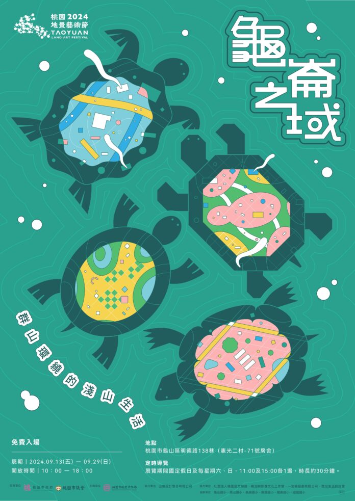 2024 桃園地景藝術節以本市龜山區的文化資產、自然與聚落景觀為核心,透過多元形式的創作,交會藝術與地景。特展《龜崙之域-群山環繞的淺山生活》展覽期間從9月 13 日起至 9 月 29 日止,地點於龜山區大同路138巷(憲光二村-71號房舍)。每週六、日及國定假日上午 11 時及下午 3 時,上下午各一場,安排 30 分鐘的定時導覽,參與導覽及有獎徵答活動,將有機會獲得特展主題限量好禮!