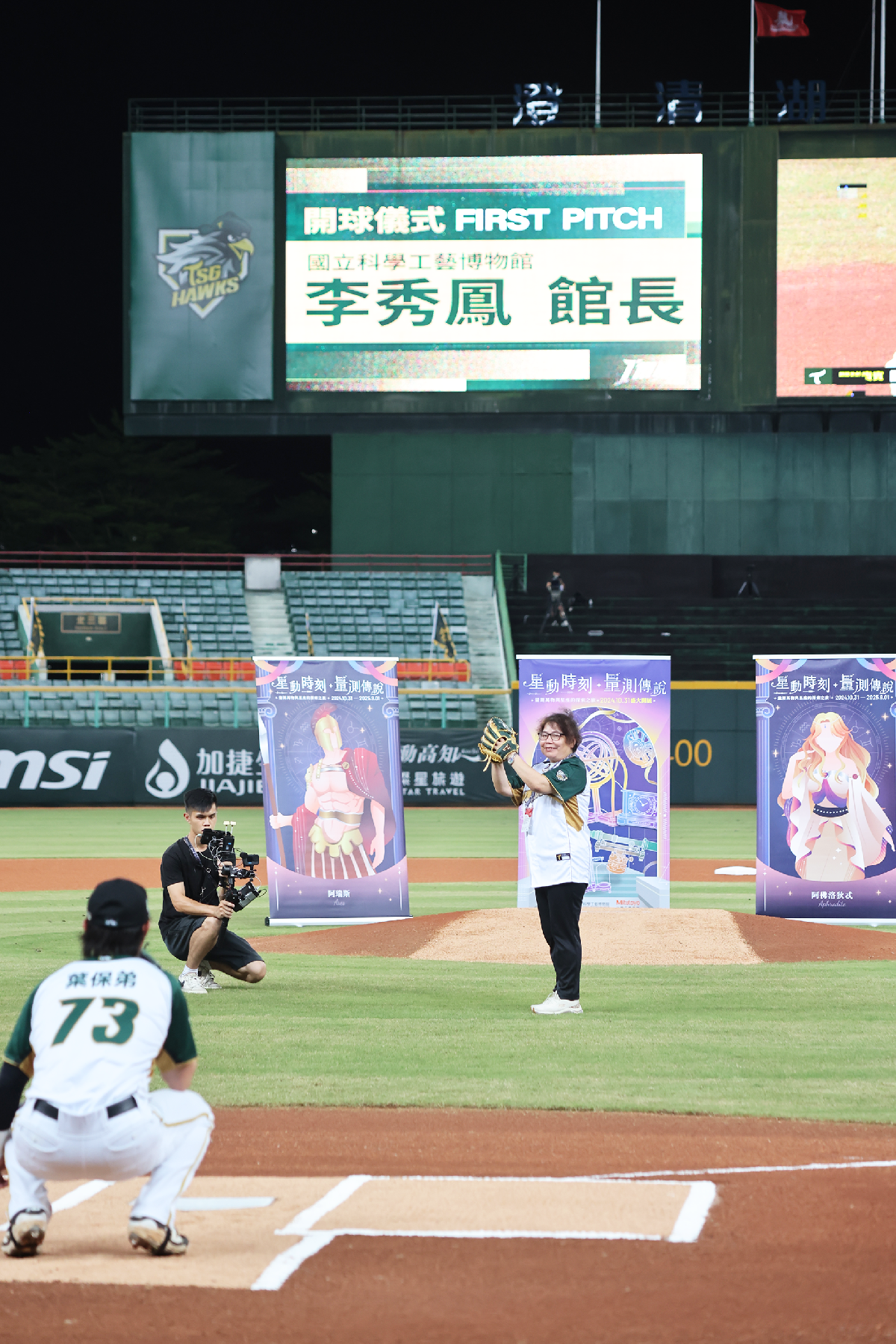 特展強棒出擊!高雄國立科學工藝博物館(科工館)攜手台灣三豐儀器股份有限公司(Mitutoyo Taiwan)合作策劃的「星動時刻 量測傳說—量測萬物與星座的探索之旅」(量測科技特展)將於 10月底登場,這次應中華職棒大聯盟台鋼雄鷹之邀,9月24日晚間由科工館李秀鳳館長前往澄清湖棒球場參加開球儀式,為特展暖身。
