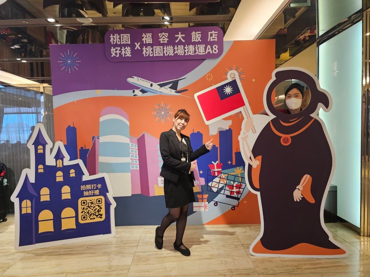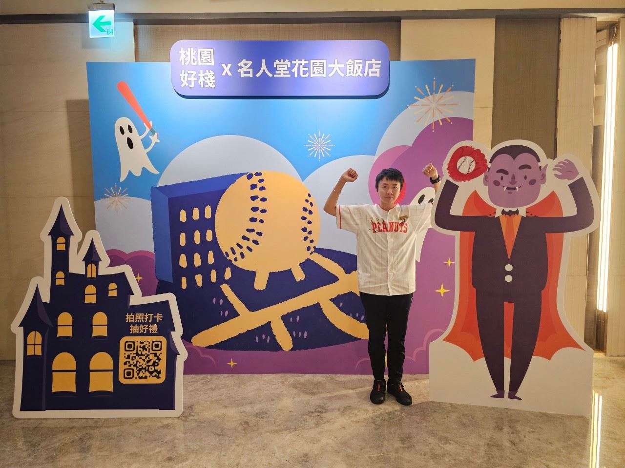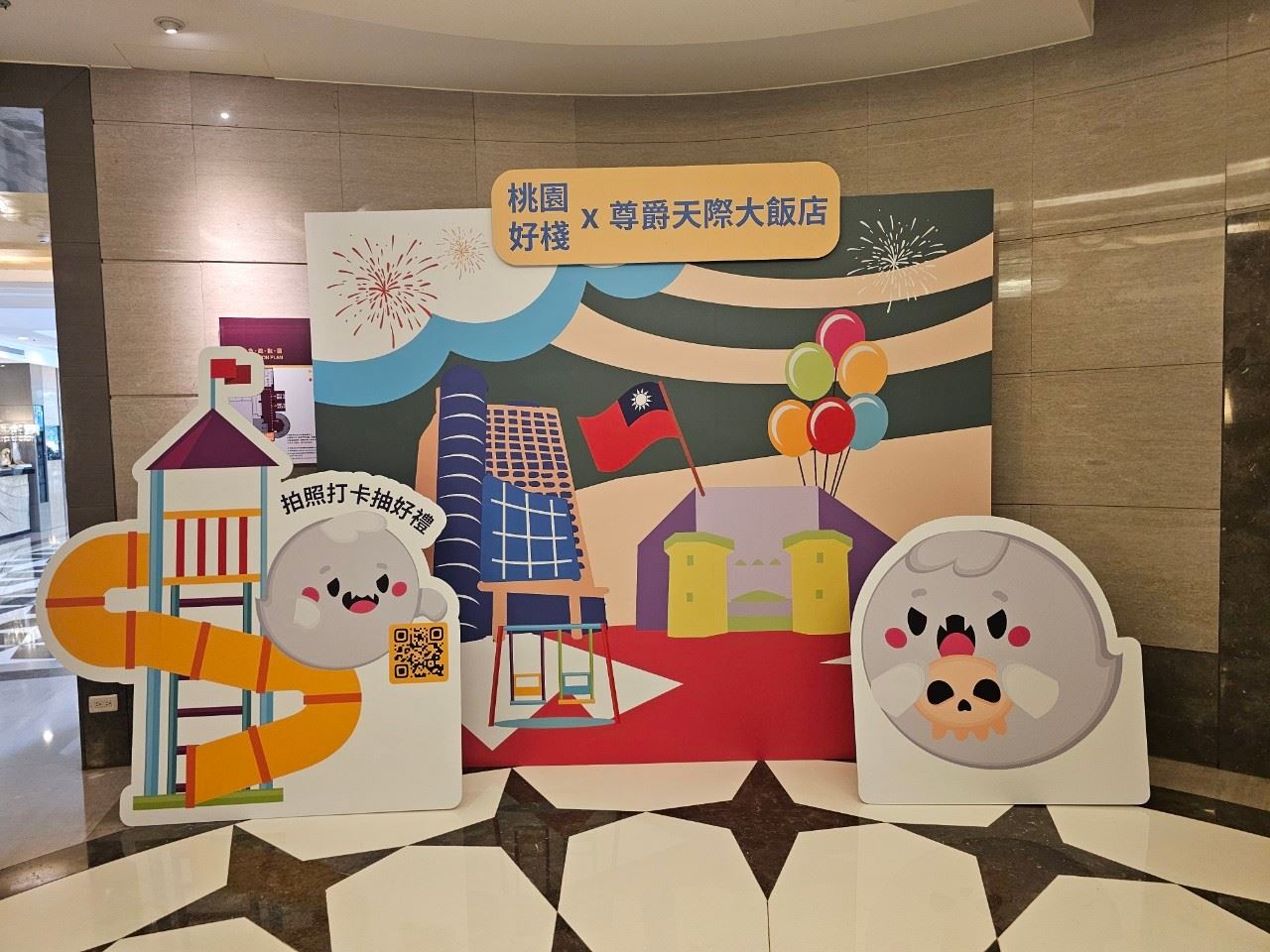 觀光旅遊局周柏吟局長表示,這次觀光旅遊局製作了10款限定拍照打卡牆,結合萬聖節元素及歡慶國慶煙火意象,搭配活潑的拍照動作及打卡分享,跟好友一起歡慶十月國慶日與萬聖節。這次10款限定拍照打卡牆放置於名人堂花園大飯店、和逸飯店桃園館、福容大飯店桃園、桃園喜來登酒店、尊爵天際大飯店、南方莊園渡假飯店、尊爵大飯店、住都大飯店、福容大飯店桃園機場捷運A8、台北諾富特華航桃園機場飯店,邀請大家趕快來桃園蒐集。