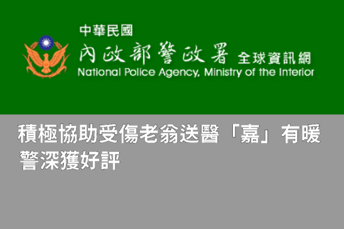經了解該名侯姓老翁騎乘腳踏車在道路上自摔,當時警方見狀主動上前關心,發現侯翁四肢無力不能站立,立即攙扶侯翁至路旁休息,警方見侯翁因自摔導致四肢多處擦挫傷,並通報119救護車前來將其送往就近的醫院就診,警方為顧及侯翁生命安全,避免衍生其他人車2度撞上老翁,隨側在旁邊照護侯翁安全,待救護人員還未到場之同時,楊員關懷侯翁為何會騎腳踏車突然摔倒,侯翁即向警方表示突感到身體不適,才會重心不穩無法控制手把而摔車受傷,所幸侯翁經送醫檢查後身體並無大礙,老翁對於警方的暖心協助皆讚許不已,頻頻向警方表達感謝之意,同時肯定警方在其受傷後積極的主動關心,讓他感受到警察對民眾如此溫暖,不愧是人民褓母;警方也不忘提醒侯翁,如遇身體不適時,切勿自行外出,以免發生意外。