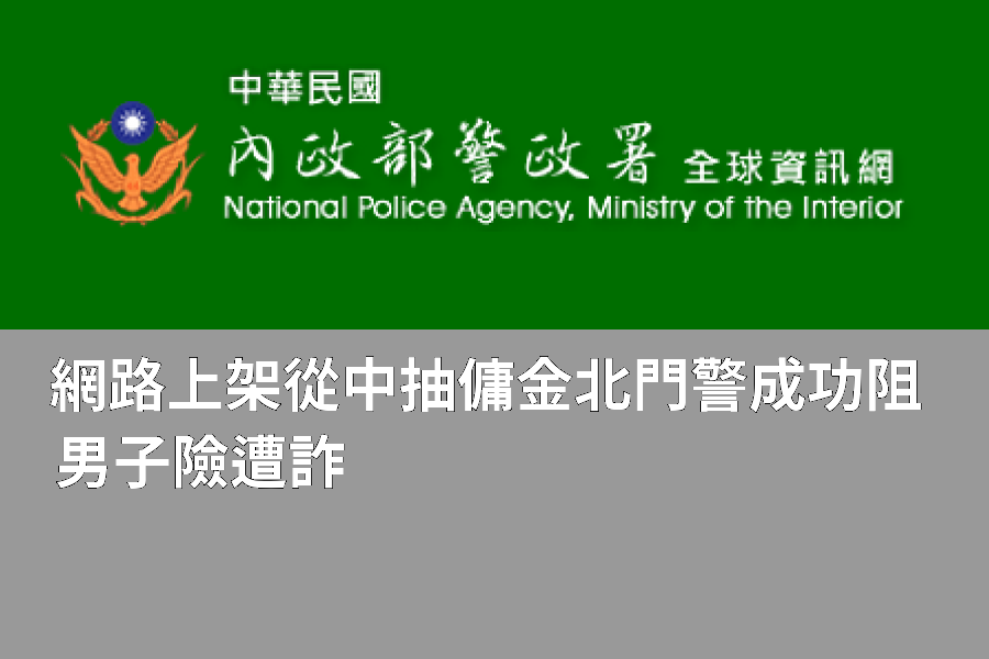 警方到達現場後,銀行行員向警方表示該名男子臨櫃欲開戶並存入新臺幣(下同)1萬元,銀行行員關心男子開戶用途,男子向銀行行員表示架設網拍網站需要使用帳戶,銀行行員接著詢問網站的架設內容及過程,但男子的應答臉色支支吾吾,於是行員立即暫緩男子的開戶及存款並立即通報警方。警方到場後,詢問男子發生事情的始末時,該男子向警方表示為日前使用臉書認識1名女網友,然女網友和男子互相加入Line成為好友,經過網友長時間的寒暄及問候,男子十分相信2人已成為好友,故經網友提供男子投資方法,告知男子先於網路上架設網路拍賣網站,並可從中獲得高獲利的報酬,於是男子不疑有他,按照指示至銀行開立新帳戶並先存款1萬元至指定帳戶。警方立即向男子表示該手法為詐騙手法,男子一聽恍然大悟立即放棄匯款,最後男子頻頻向警方道謝,因警方及銀行行員的熱心積極,讓男子未將款項匯款而遭詐騙,警方告知男子若爾後有遇到任何問題都可隨時撥打165或是派出所電話進行詢問。