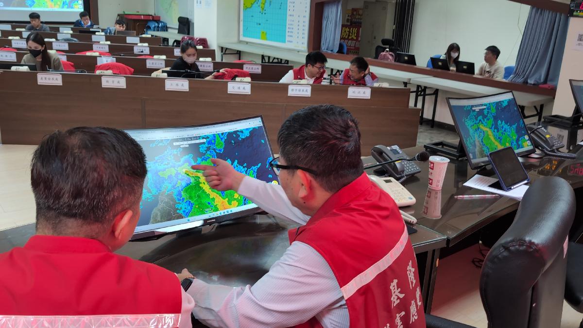 基隆市災害防救辦公室副主任方定安秘書長、工務處長陳耀川、消防局長游家懿進駐應變中心處理可能災情狀況。工務處長及消防局長,與地方氣象站保持聯繫,遇到雨帶環流進入基隆時對於區域的瞬間降雨及時因應提醒各局處。