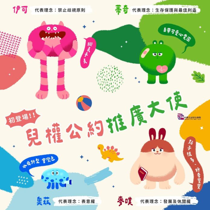 為響應 11 月 20 日「國際兒童人權日」,以及台灣「兒童權利公約(簡稱CRC)」國內法化10週年!桃園市政府社會局創作了「桃園Q萌宣傳大使」,分別將四個兒童人權公約的重要概念,化身成四個超萌IP,分別是代表「禁止歧視原則」的伊可、「兒童最佳利益原則」的蒂奇、「兒童的發展權及休閒權」的麥噗及「兒童有表達意見的權利」的奧茲。