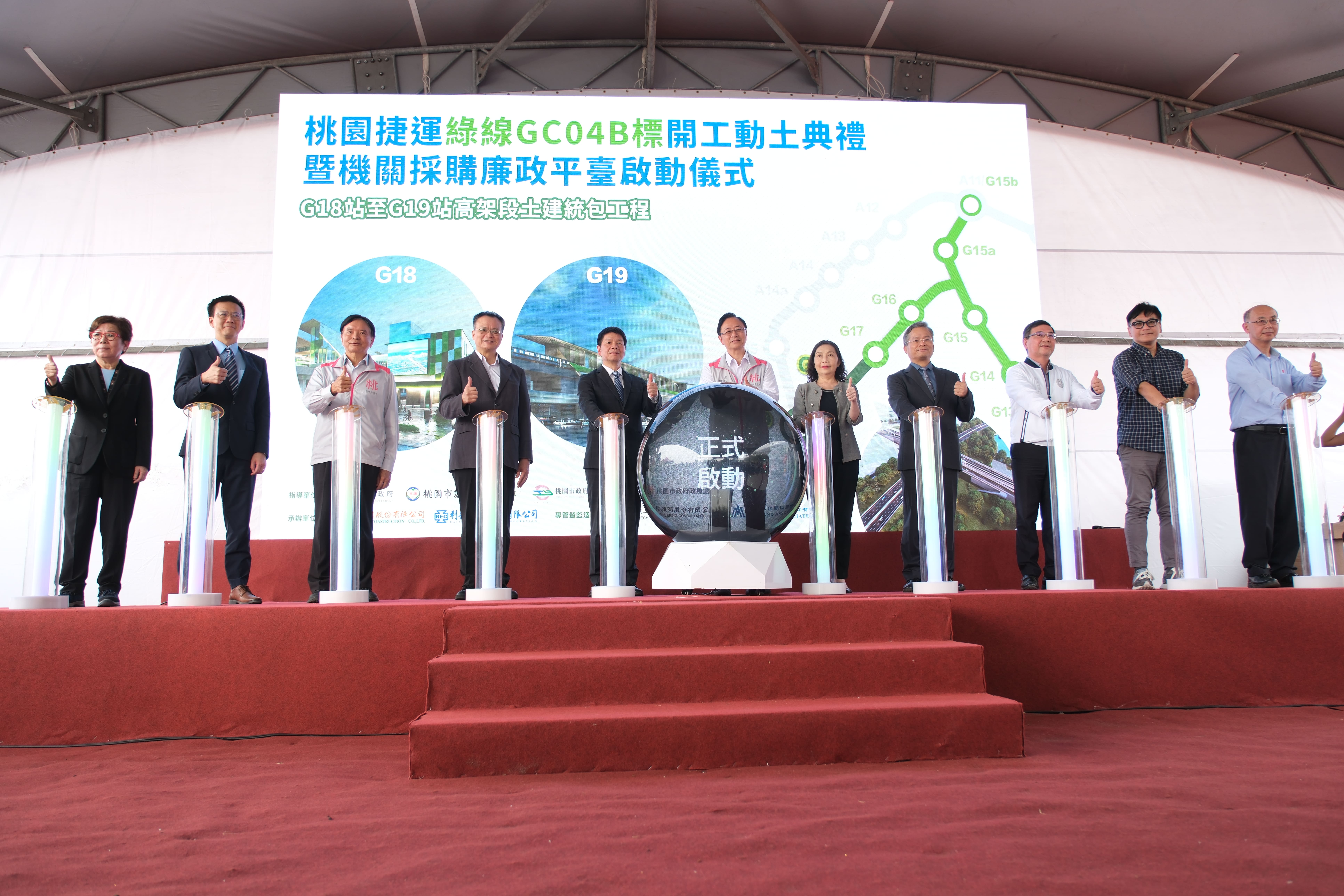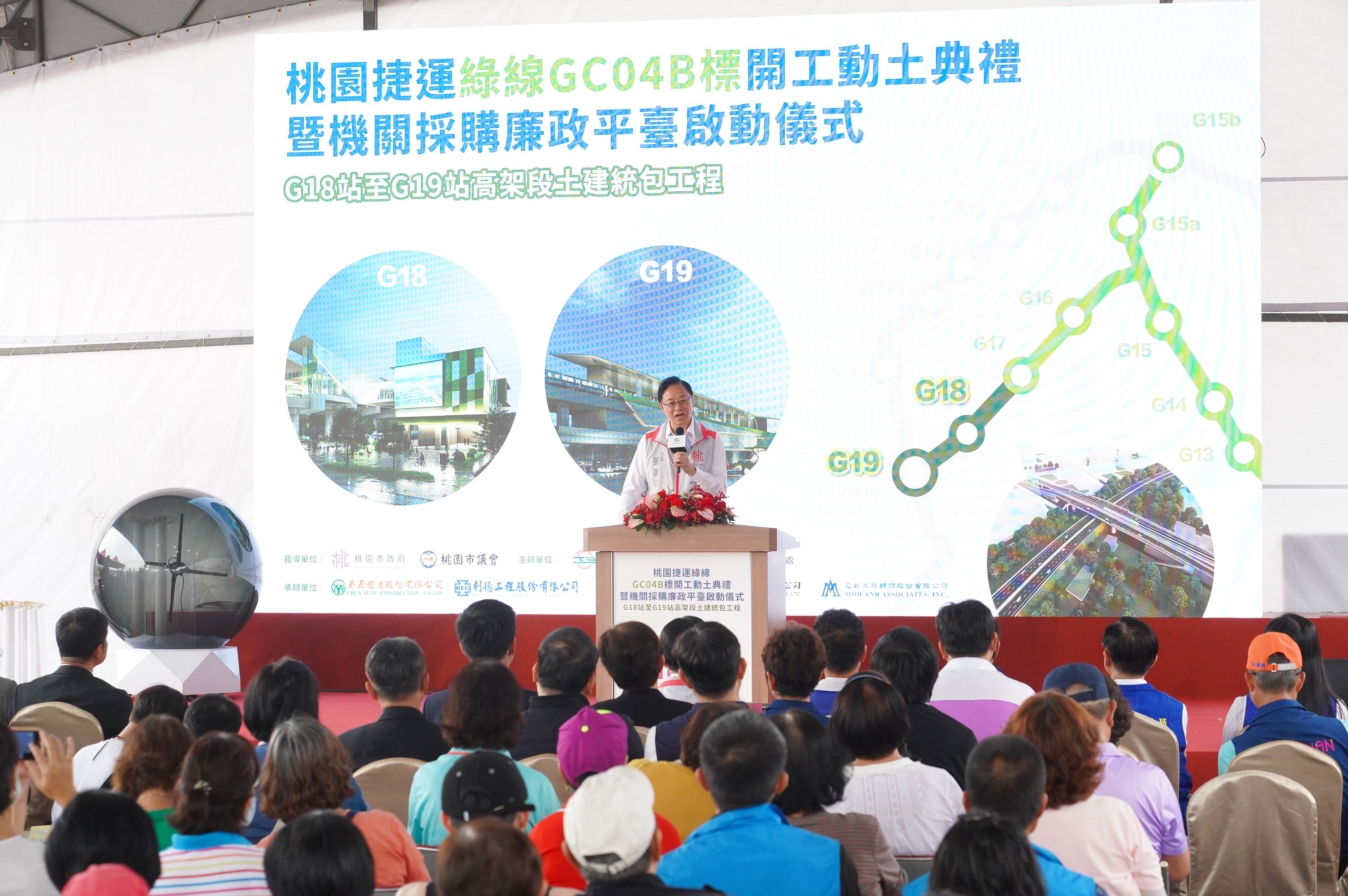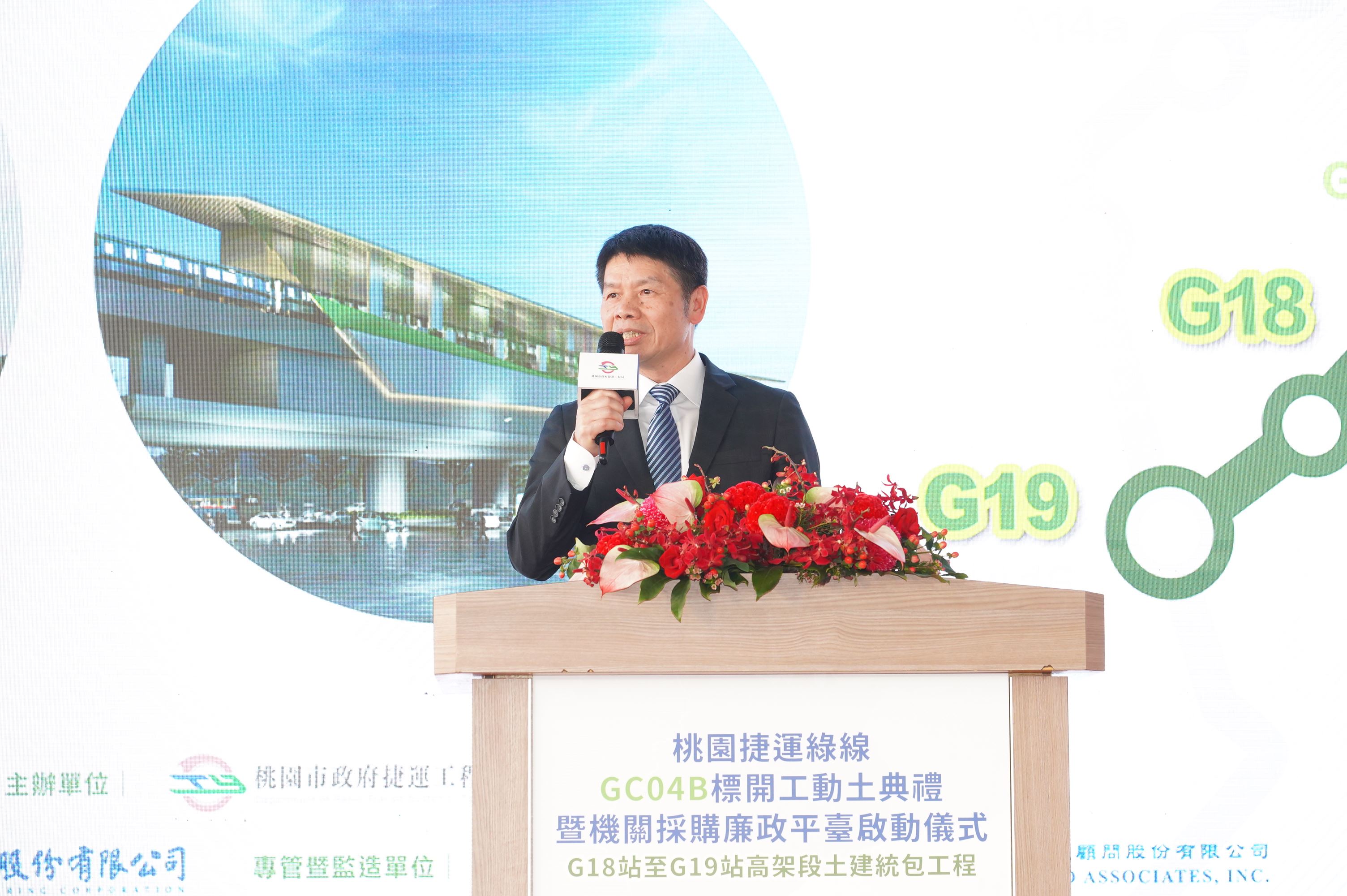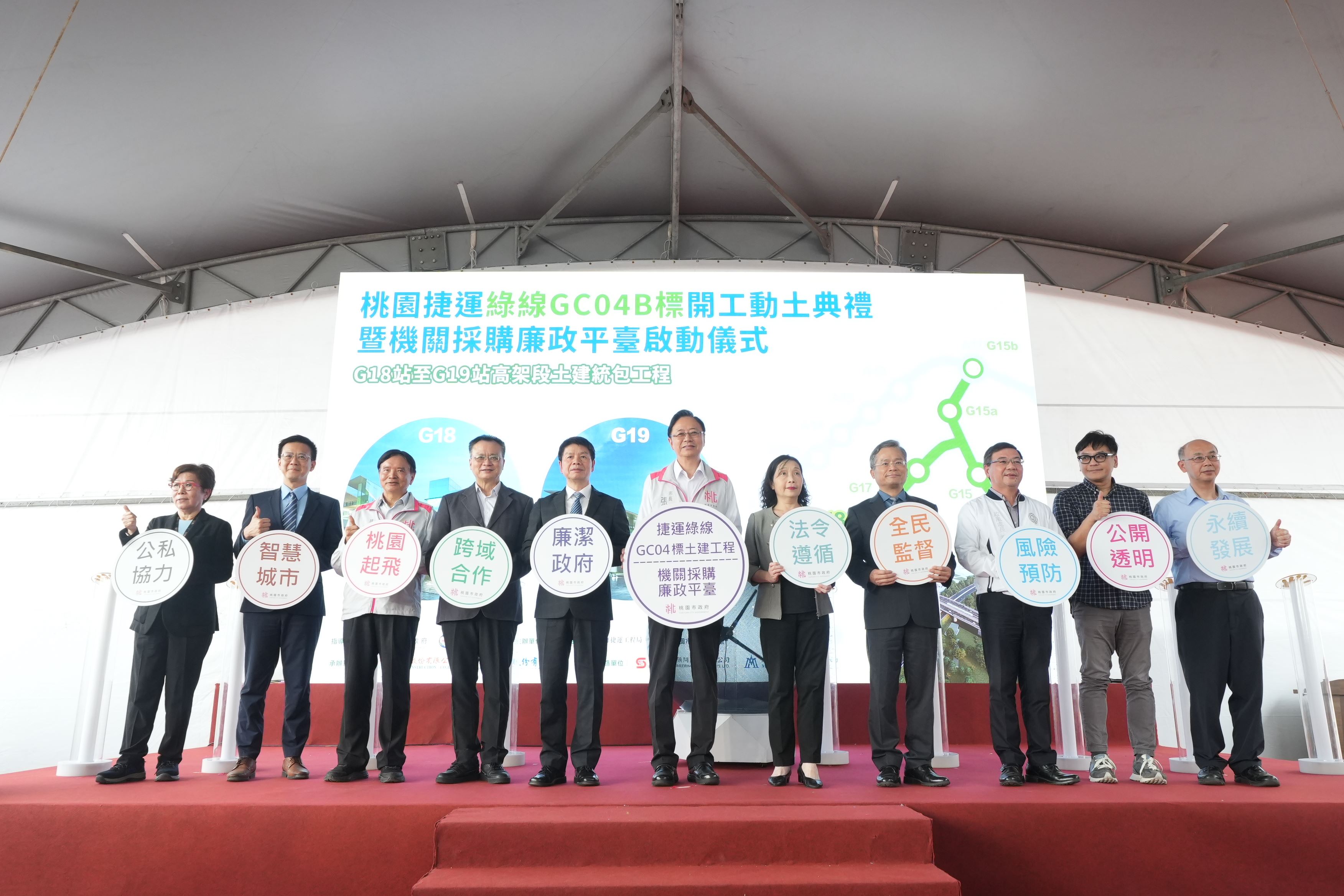 在捷運綠線GC04B標工程開工之際,桃園市政府攜手廉政署、檢察署、職安署及調查機構並邀請專家學者成立「機關採購廉政平臺」,開展跨域合作,確保行政透明,公私協力及全民監督,打造安心、透明的履約環境。市長指出未來桃園捷運綠線G19站可再規劃銜接機場捷運軌道,串聯A18高鐵桃園站在桃園境內環狀運轉。市府也將樽節預算,落實廉政價值,不浪費工程預算,因此平臺的設立不僅強化了市府的廉政作為,併同市府原有督導機制,也進一步保障工程不受不法外力干擾,能如期如質地完工,為市民提供更便捷的交通服務。
