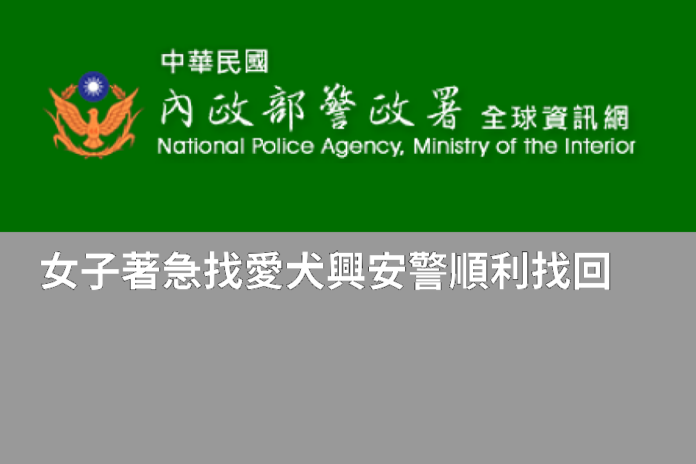 視犬如命的朱姓女子向警方表示自己的愛犬從家中跑出去,所以才騎車出來尋找,已經找了好幾個小時都找不到,之前從來沒有走失的經驗,相當著急且煩惱,深怕愛犬遭遇不測。警方了解情況後,先行安撫朱女不安情緒,並且詢問犬隻相關特徵,朱女表示自己的愛犬是哈士奇、大型犬,警方根據朱女所提供的特徵至轄區找尋,恰巧有1名民眾帶著哈士奇犬前來派出所,表示該哈士奇犬疑似走失,已在道路閒晃一陣子,見飼主遲遲未出面牽回,擔心衍生流浪犬問題,希望警方能幫忙找尋飼主,警方比對該隻哈士奇特徵,並通知朱女前來派出所確認,該犬見朱女即親密互動,「好擔心你啊!」朱女激動地回應,確定是思念的愛犬。朱女隨後向警方頻頻感謝,相當肯定警方的認真,並不會因為走失的只是犬隻,就沒有特地尋找,反而是積極的在附近找尋,順利將走失的愛犬尋回,避免遭有心人士拐走或致生其他意外事故;警方也藉此機會提醒要多留意小狗狀況,最好是繫上項圈並且綁好,避免愛犬再次離家出走。