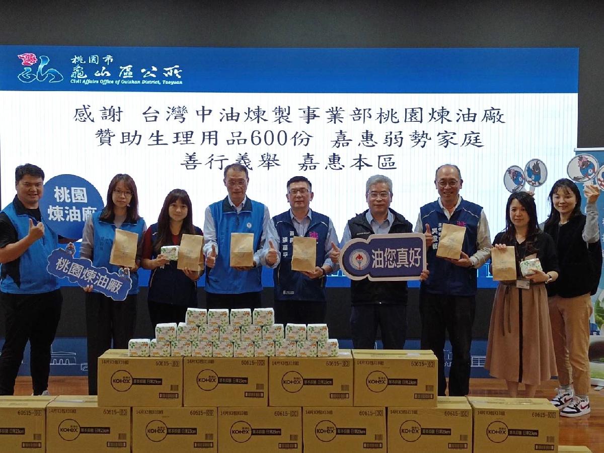 中油桃園煉油廠響應龜山區公所「守護之翼」計畫,免費提供生理用品助弱勢
