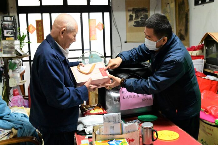 歲末年終適逢首波寒流來襲,對長輩們健康影響至鉅,土城區長陳國欽昨(14)日代表巿長侯友宜親自帶了棉被、暖暖包、保溫瓶、八寶粥及麵條等各式禦寒民生物資到獨居長者家中,與長輩話家常,關懷生活狀況及提醒長輩多注意保暖與安全,讓長輩們感受到溫暖及滿滿的愛,安心過好年。