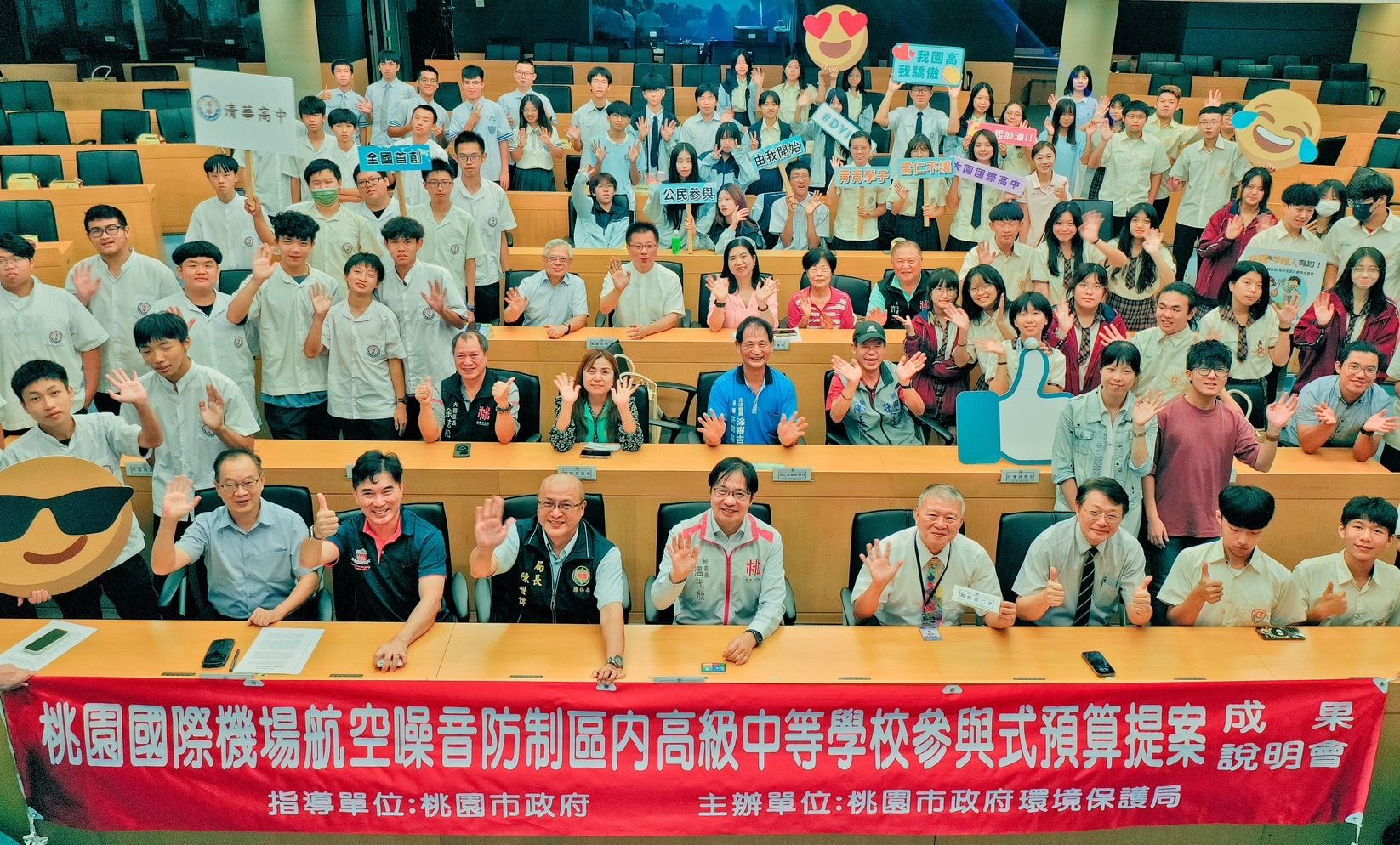 為聽取高中學子對環保業務的聲音,桃園市環保局全國首創,運用桃園國際機場回饋金推動航空噪音防制區內高中職執行參與式預算,邀請防制區內大園國際高中等4所學生及教職員共同參與,近月來透過議題說明會、提案工作坊及公開展覽,最後由各校學生及教職員票選出最佳提案,本次票選結果共2,710人投票投票率高達71%,完成投票師生有機會抽獎獲得平板電腦,後續將交由市府各權責機關執行。