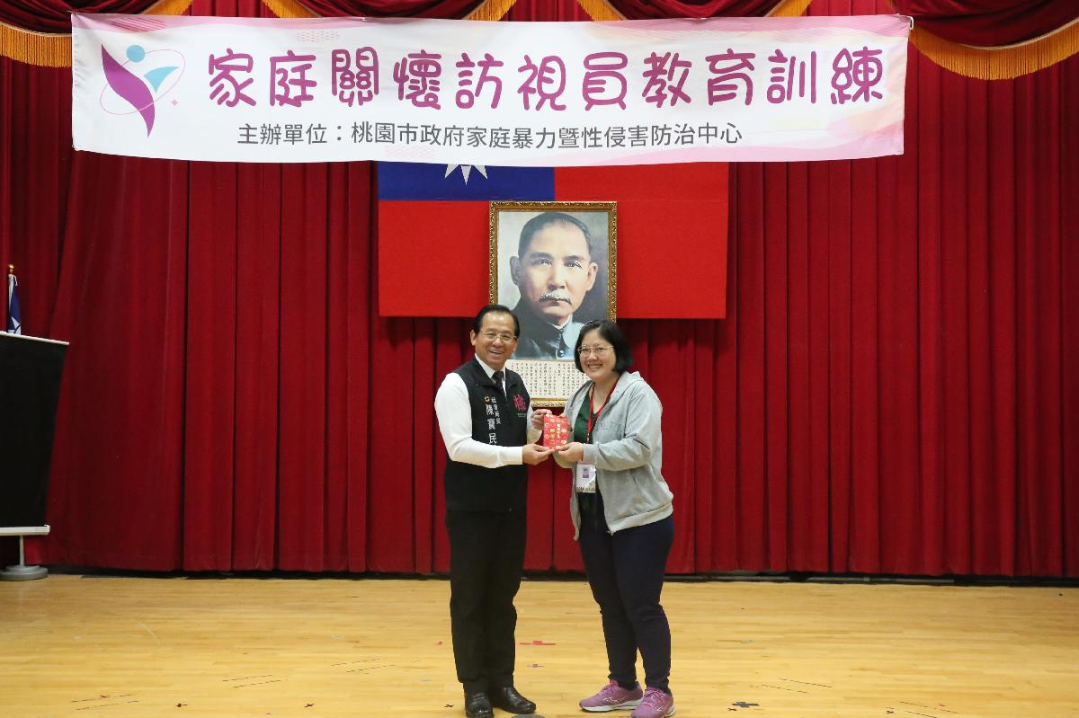 桃園市社會局局長陳寶民今(7)日下午前往桃園市政府警政大樓8樓禮堂,出席桃園市政府家庭暴力暨性侵害防治中心辦理的「兒少家庭關懷服務方案教育訓練暨感恩年會」。活動中,陳局長向31位兒少家關員頒發感謝狀及禮品,表達誠摯敬意,並肯定其深入社區,挹注在地化的兒少及家庭關懷服務,提供兒少保護因子,以及持續追蹤兒少安全與照顧情形,預防兒虐發生。