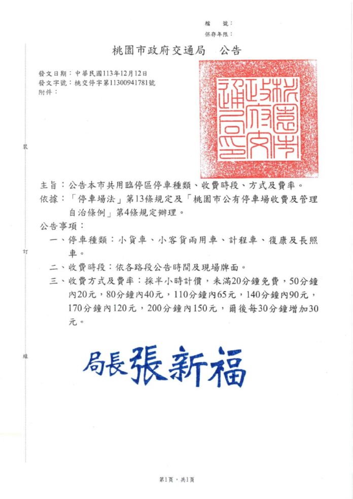 北部新聞桃園市公告本市共用臨停區停車種類、收費時段、方式及費率