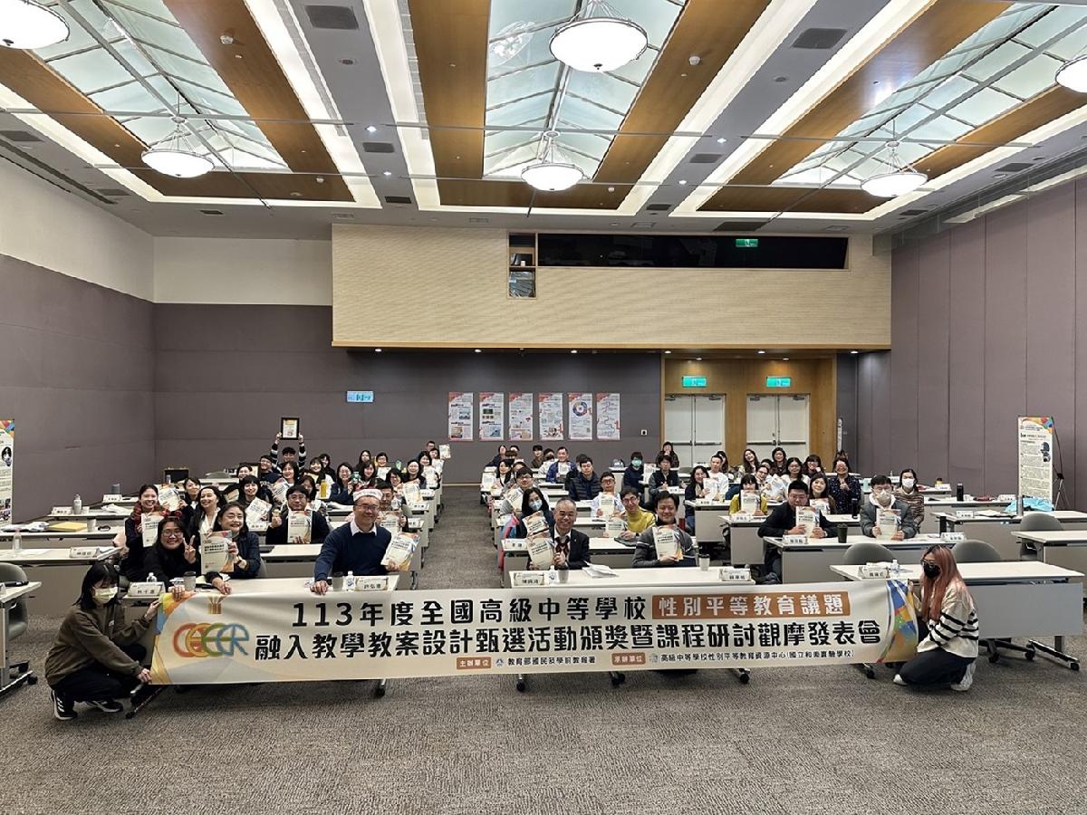 為推動性別平等教育課程在校園中實踐,教育部國教署持續鼓勵教育人員研發性別平等教育校本課程及議題融入各領域之教材,創造多元教學方法以提高教學效果並激勵專業成長,並辦理「113年度全國高級中等學校性別平等教育議題融入教學教案設計甄選活動」,評選出得獎教案計特優1件、優等2件、甲等1件、佳作2件,今(24)日進行頒獎,同時邀請獲獎教案製成展板展出,也邀請獲獎人分享得獎教案,不僅推廣得獎教案,也啟發教師研發性別平等教育融入課程之可能性。