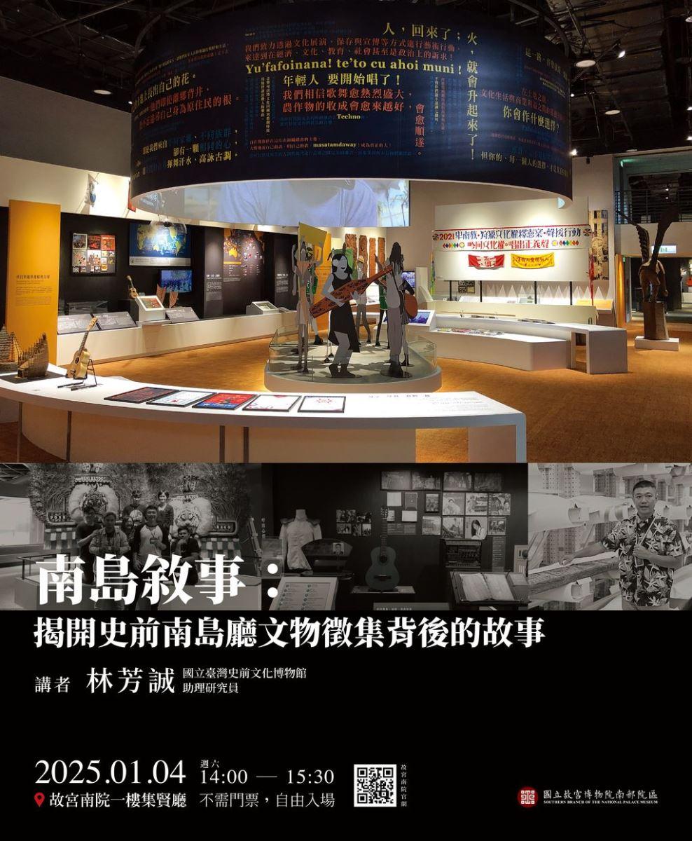 內容:分享2020年至2023年於史前館進行南島常設展廳更新期間,向國內外多個南島文化社群或個人進行文物徵集,以及多媒體影像製作等過程,展現世界南島文化多樣面貌及策展文物詮釋的新穎觀點。