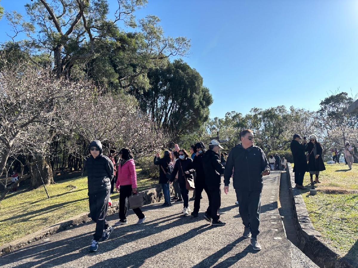 觀旅局周柏吟局長表示,這週末天氣逐漸回暖,梅花花況來到5-6成左右,特別是今天艷陽高照,氣溫舒適怡人,角板山行館園區單日擁入3萬多人次遊客上山賞花,走在梅園伴著香氣縈繞的梅香,非常愜意!梅花季活動雖已結束,但梅園梅花正值綻放,還沒來過、正在規劃行程的朋友們請把握下週最佳賞花期限,歡迎您們來角板山行館園區踏雪尋梅,走在梅園體驗梅香四溢的詩情畫意,別忘了還可以到周邊的角板山形象商圈、枕頭山魅力商圈捎上給親朋好友的在地伴手禮,或到附近角板山公園、新溪口吊橋、小烏來風景特定區,以及羅浮溫泉感受一下北橫的魅力喔!