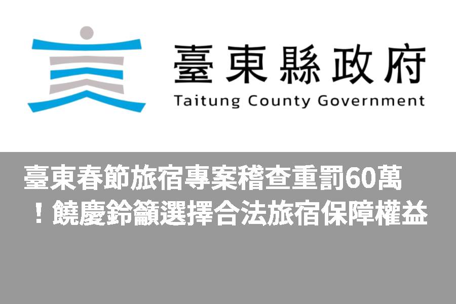 臺東春節旅宿專案稽查 重罰60萬 !饒慶鈴籲選擇合法旅宿 保障權益